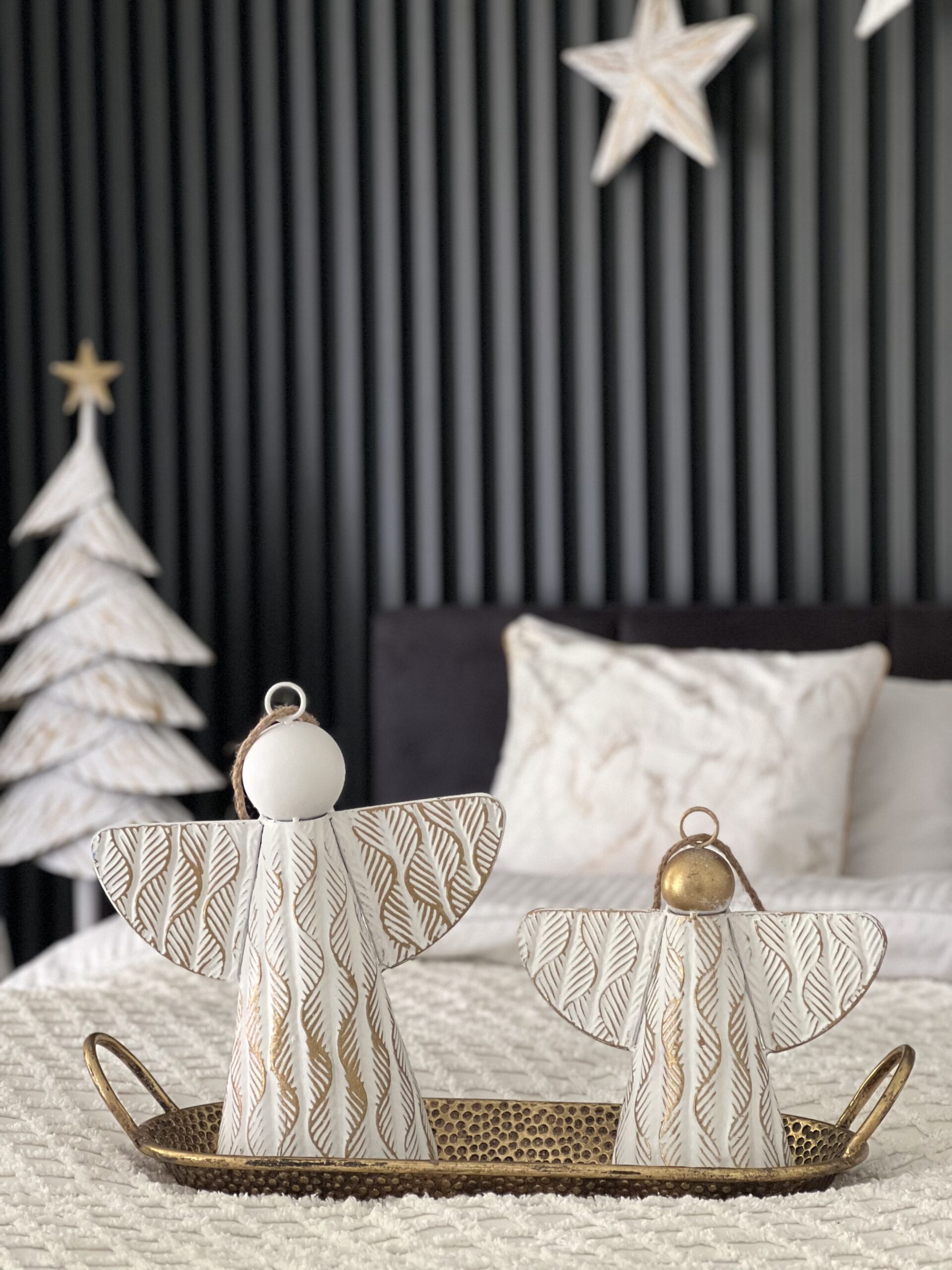 ANIOŁEK METALOWY DZWON BIAŁY DEKORACJA ŚWIĄTECZNA