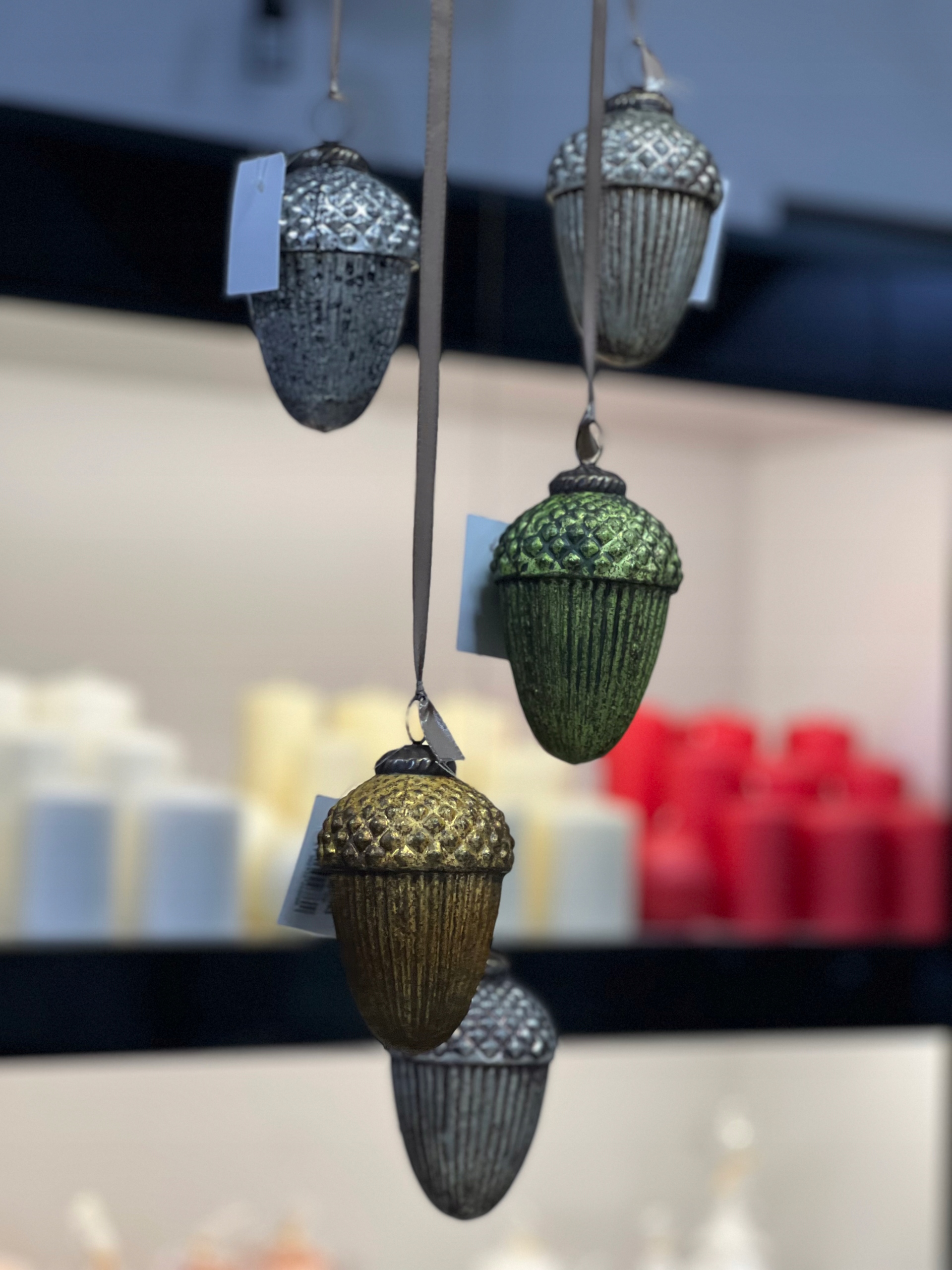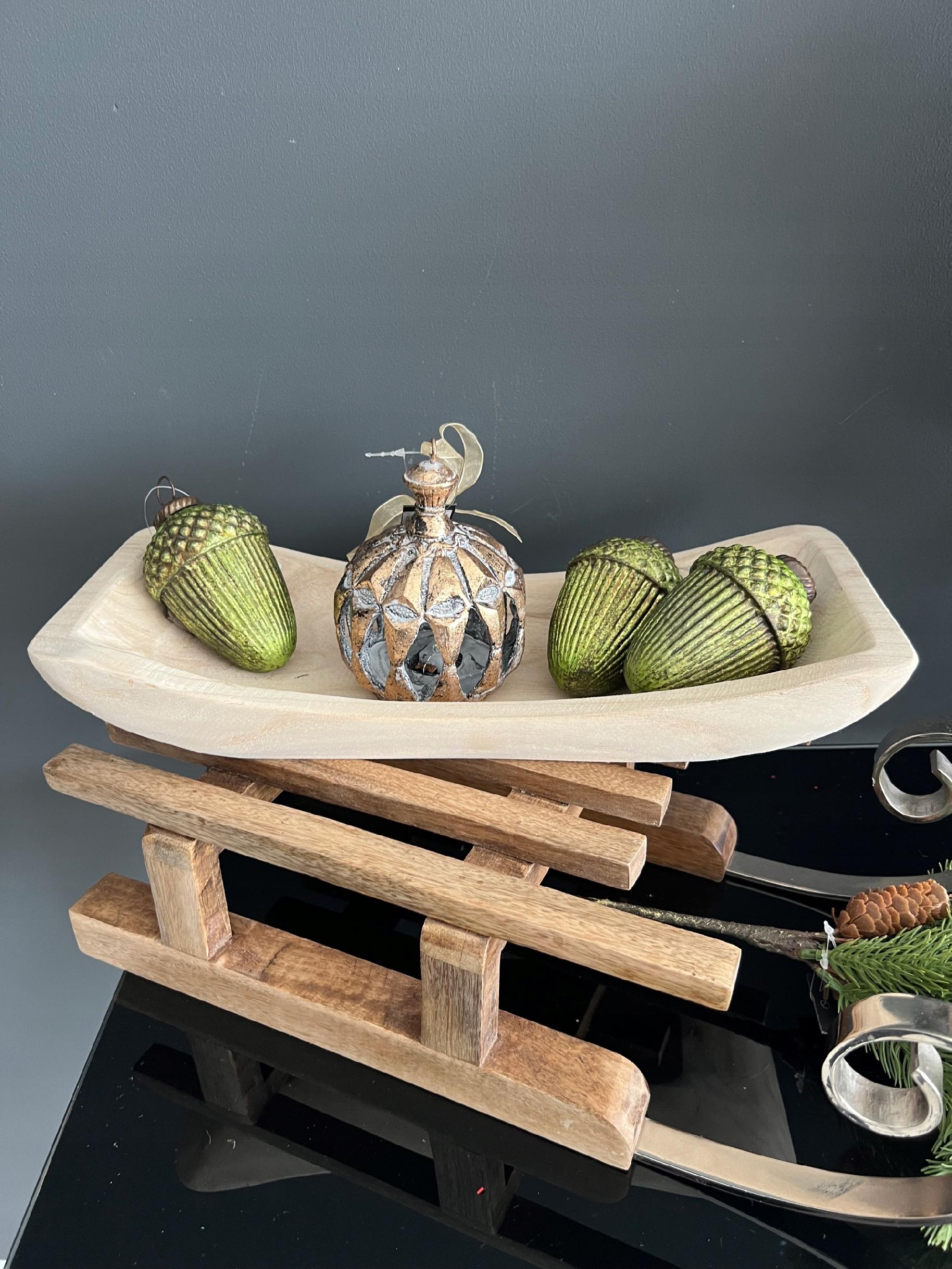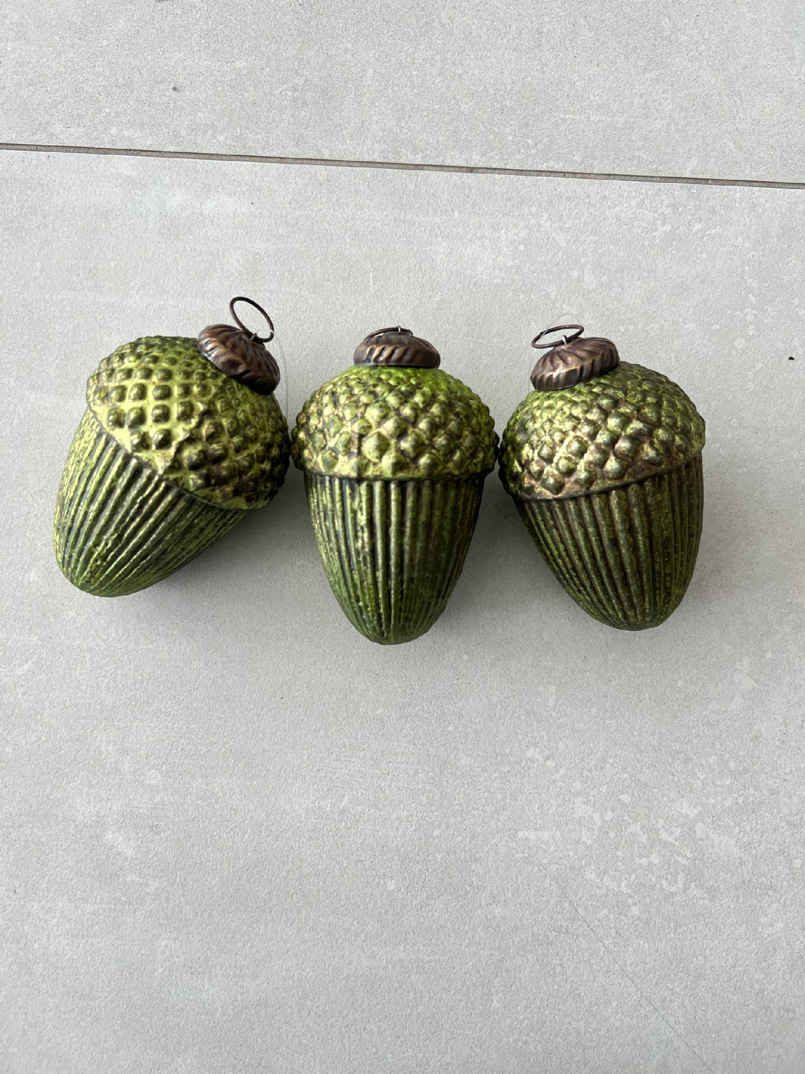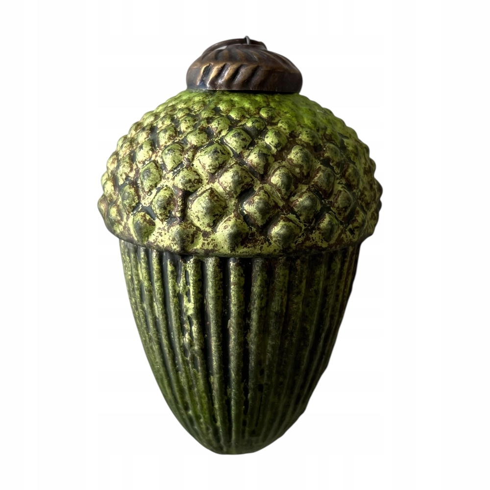 Śliczna szklana bombka żołądź w pięknym zielonym kolorze