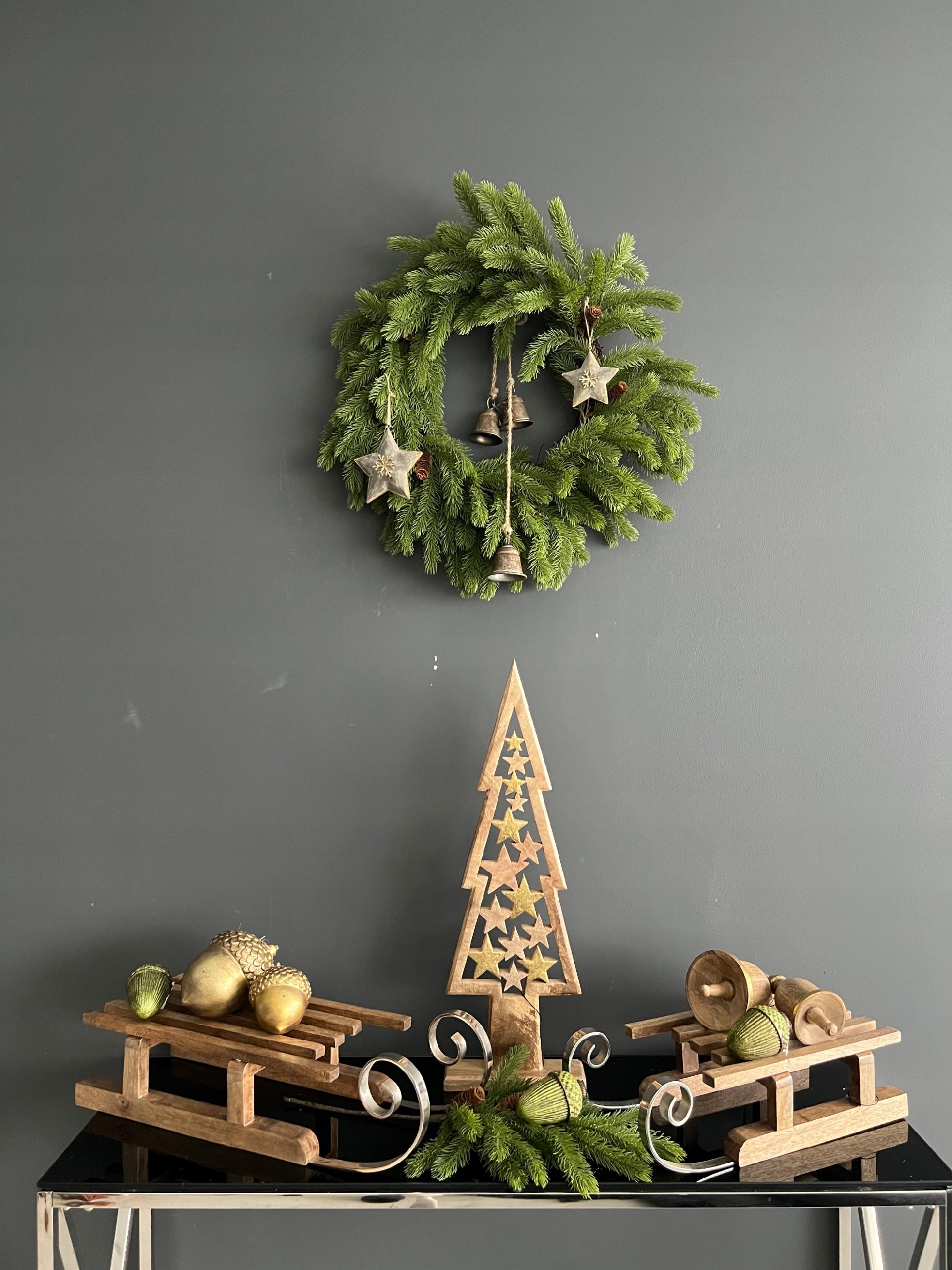 Można ją zawiesić na karniszu przy oknie, na lapie czy położyć na tacy z innymi dekoracjami na komodzie czy stole Wigilijnym
