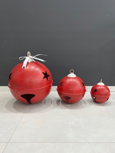 DEKORACJA ŚWIĄTECZNA KULA BOMBKA CZERWONA Z METALU WISZĄCA OZDOBA
