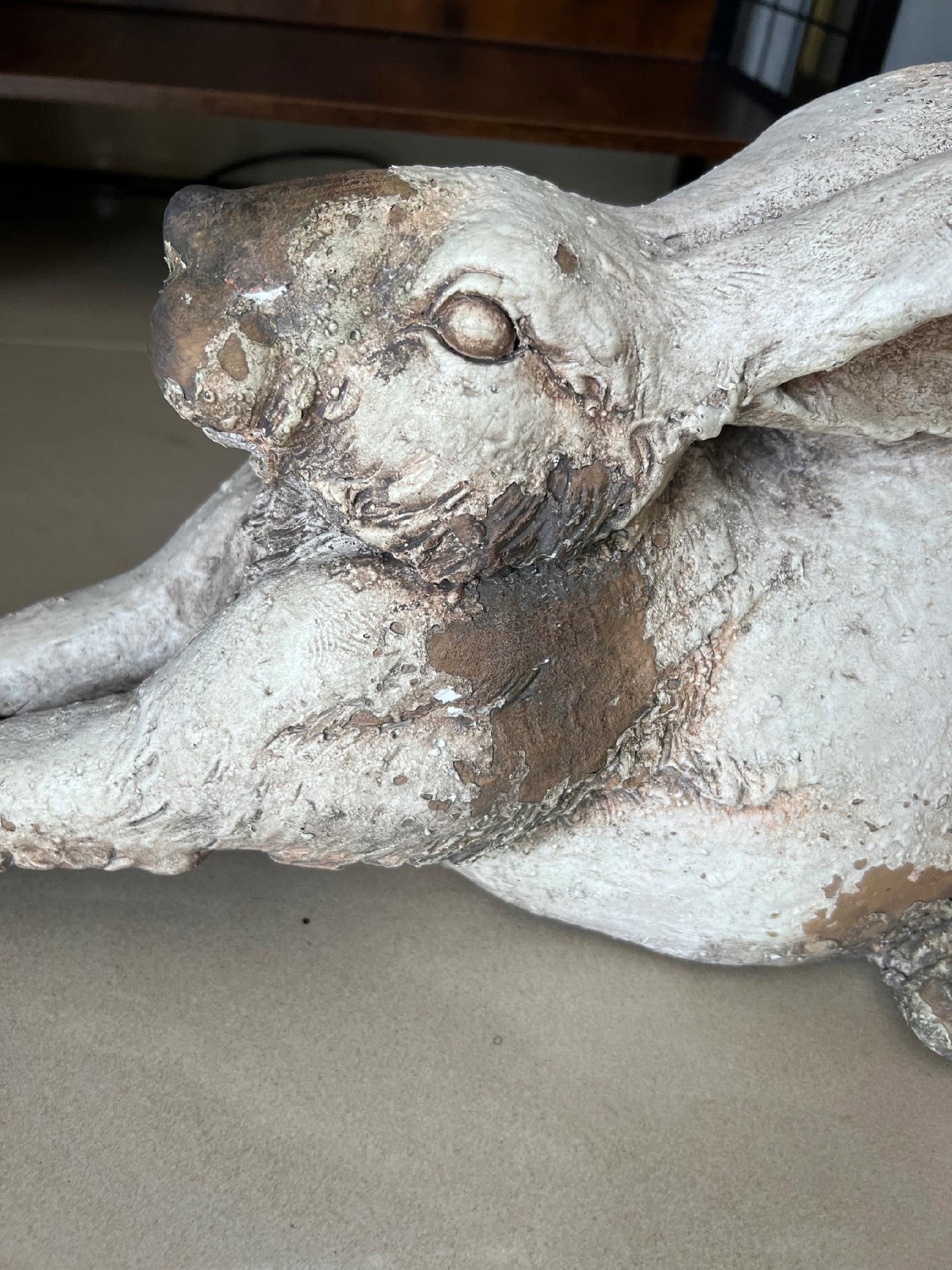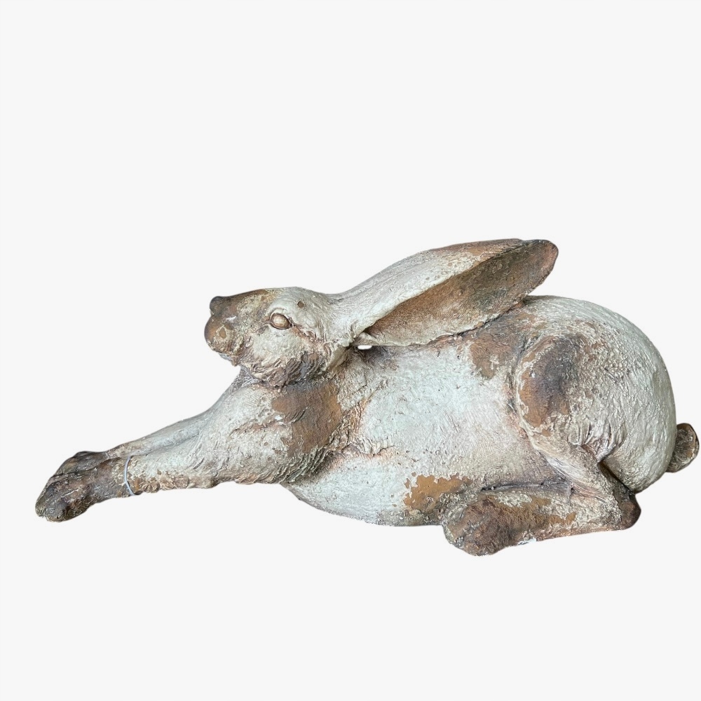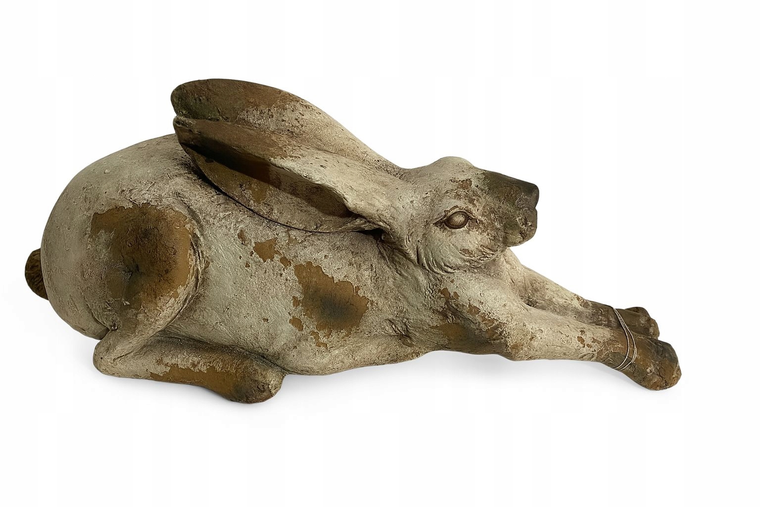 Duża niespotykana figurka białego zająca królika z ozdobnymi przetarciami