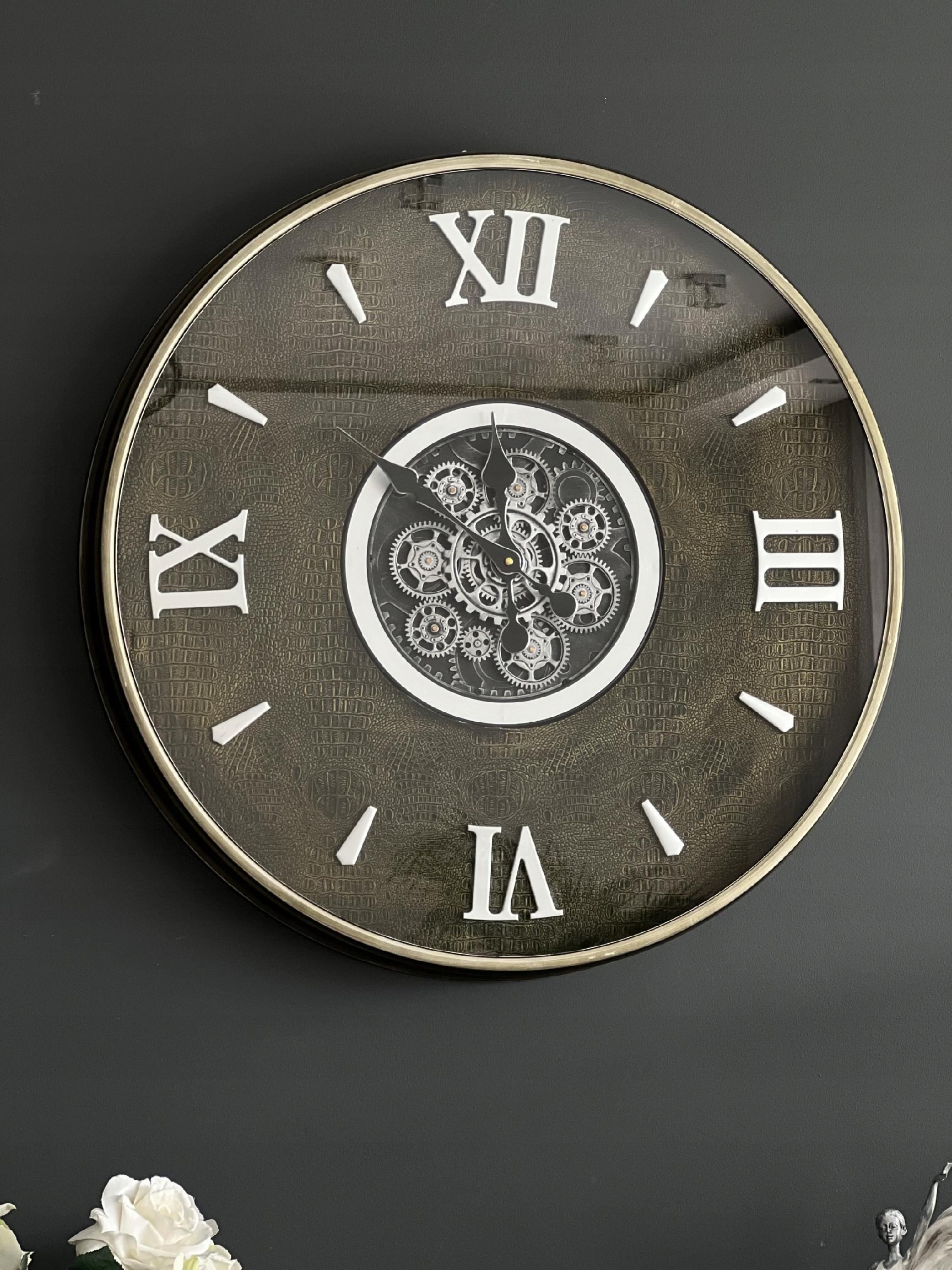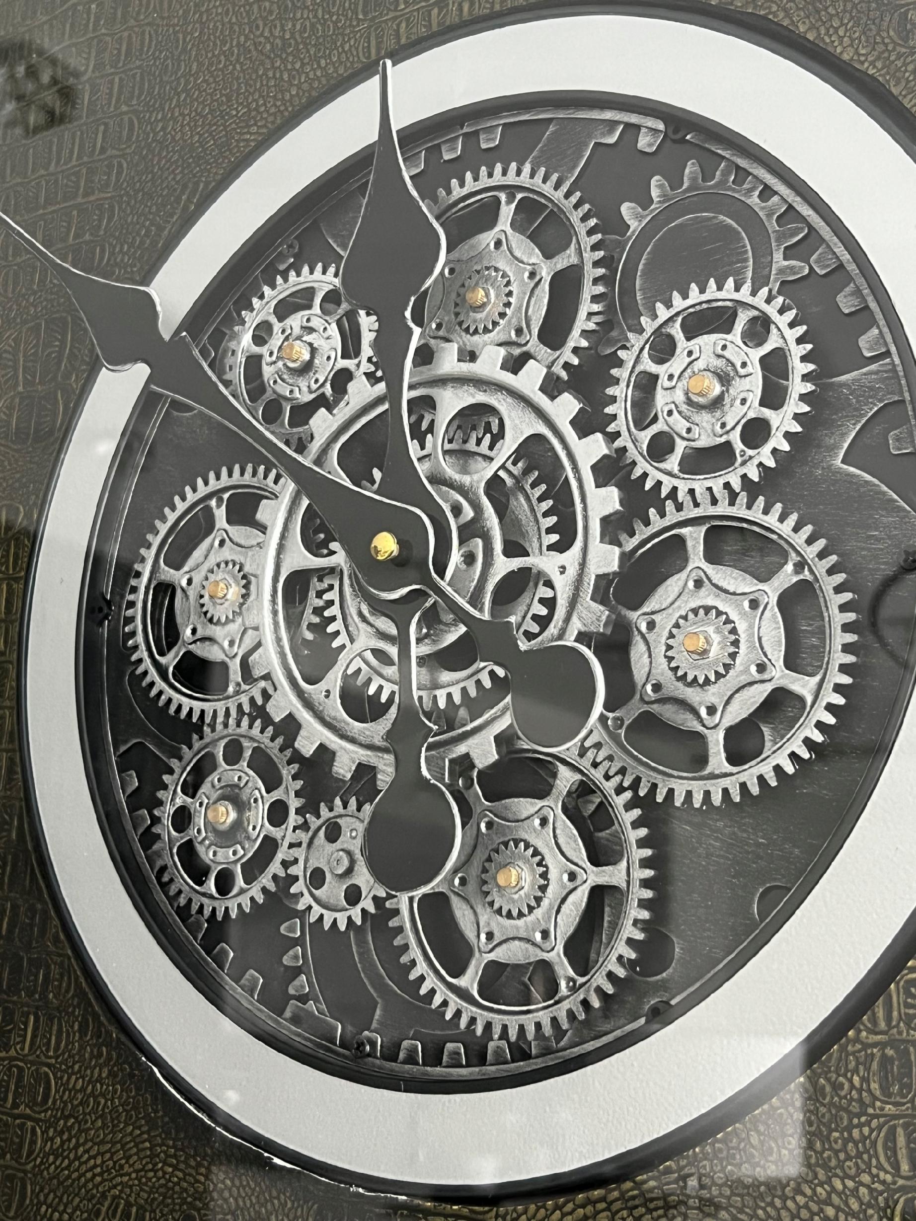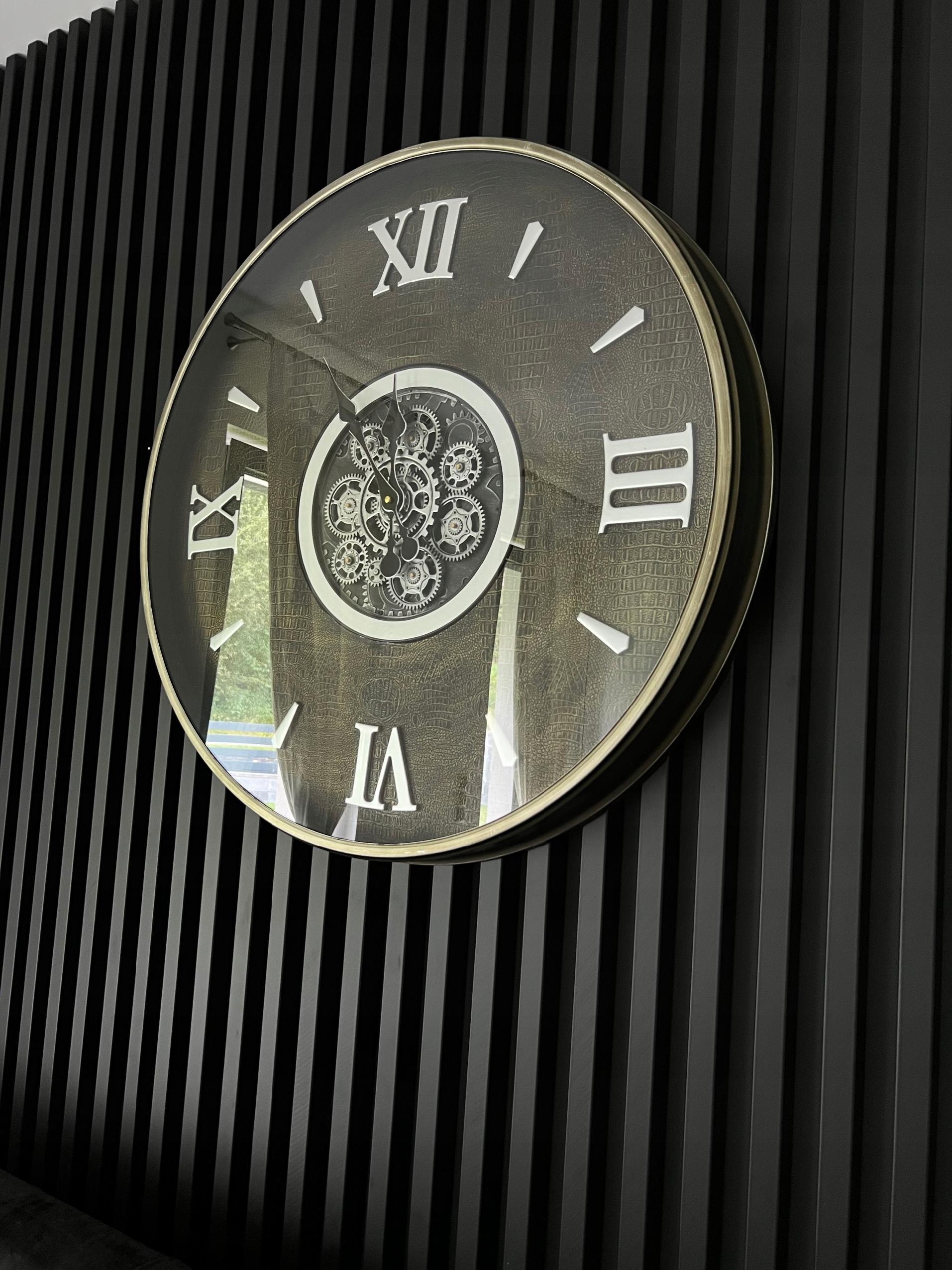 Ruchome zębatki dodają mu unikalności i interesującego wyglądu, co sprawia, że jest to wyjątkowy zegar dla osób poszukujących czegoś