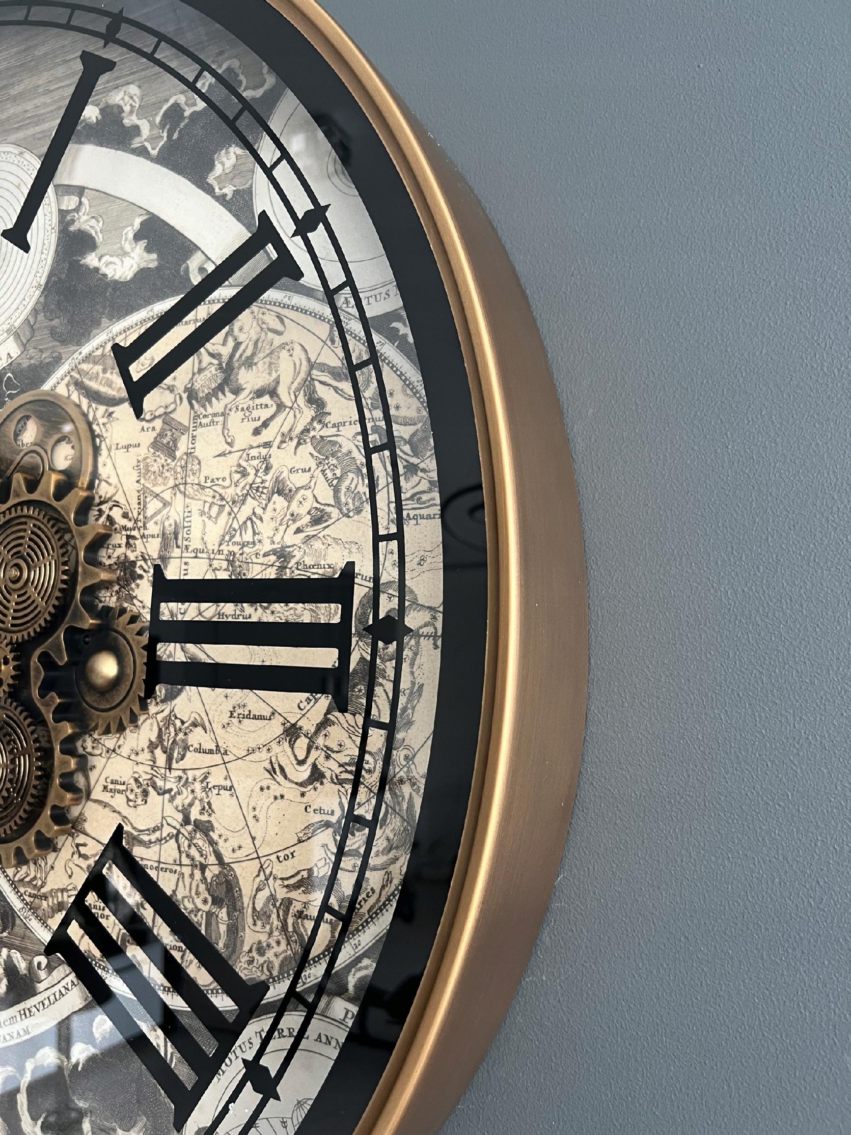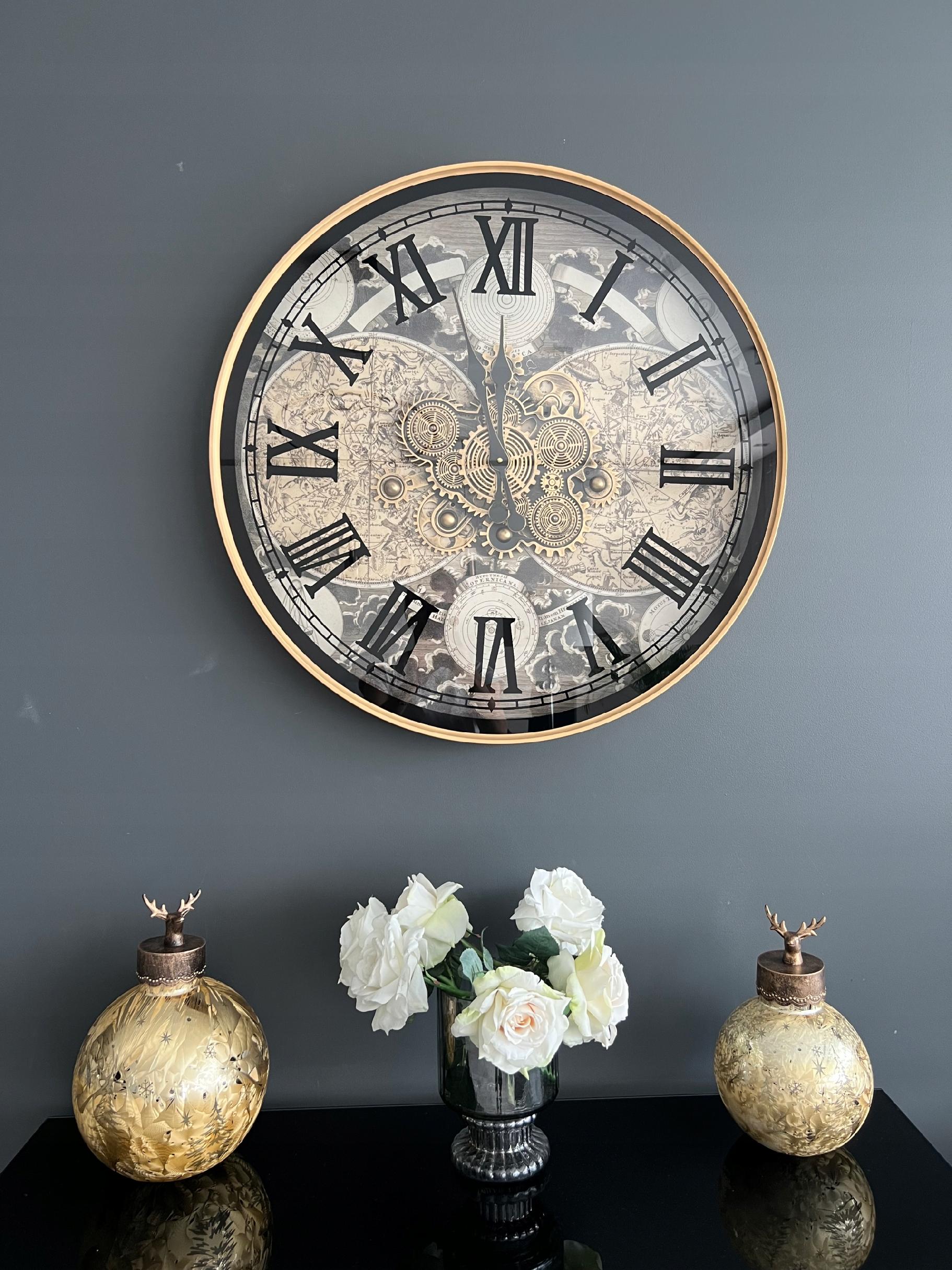 Ruchome zębatki dodają mu unikalności i interesującego wyglądu, co sprawia, że jest to wyjątkowy zegar dla osób poszukujących czegoś