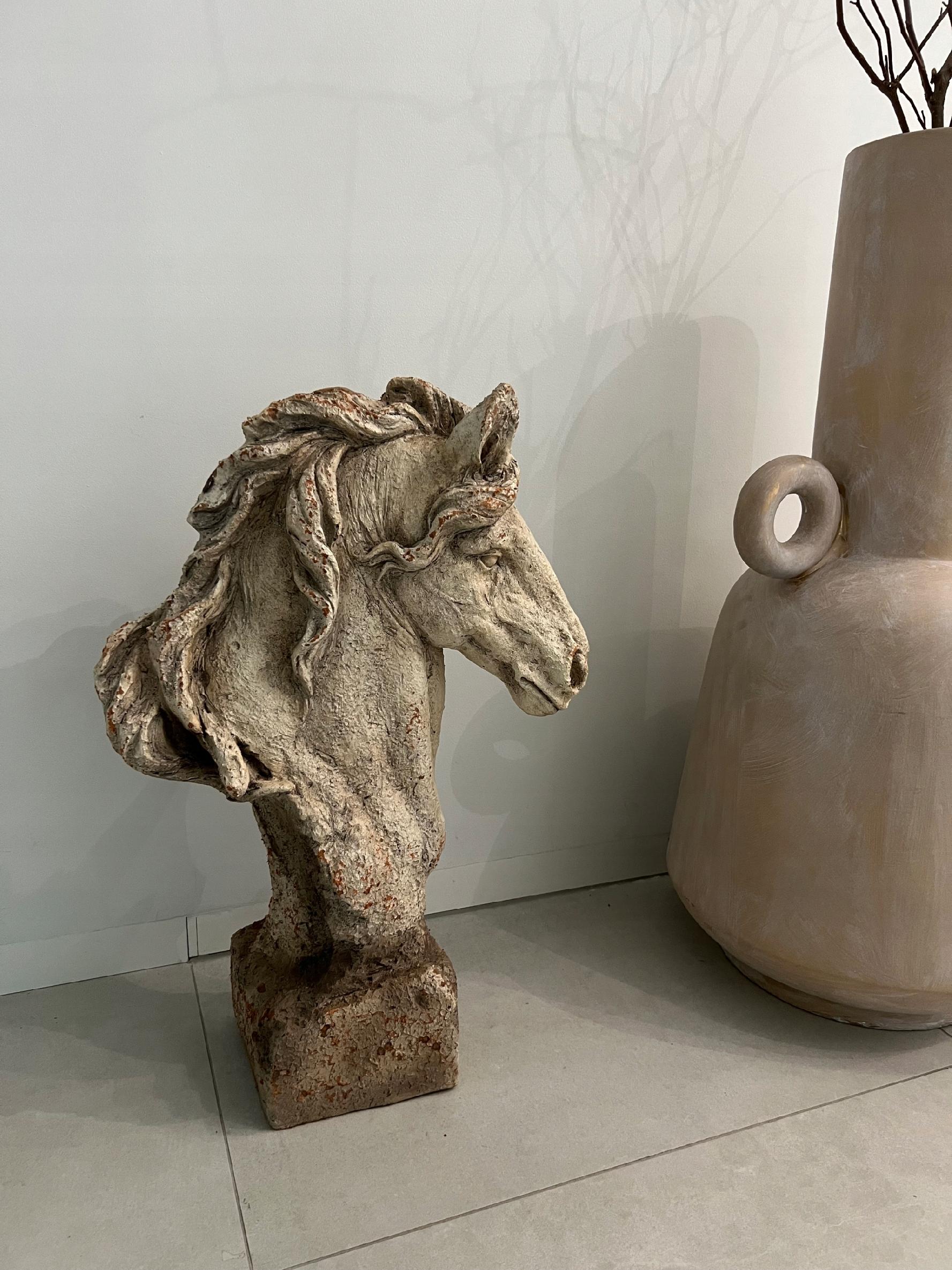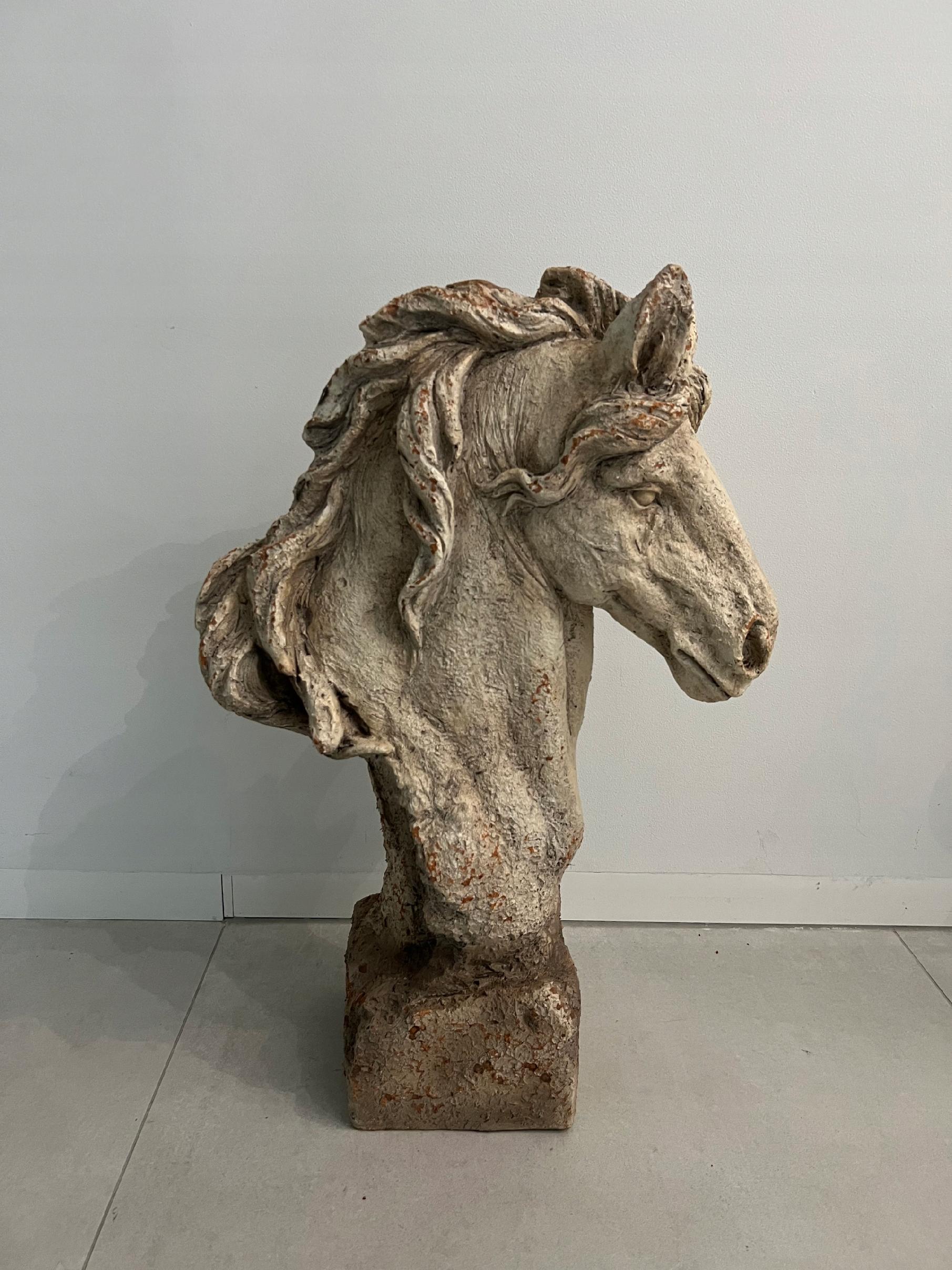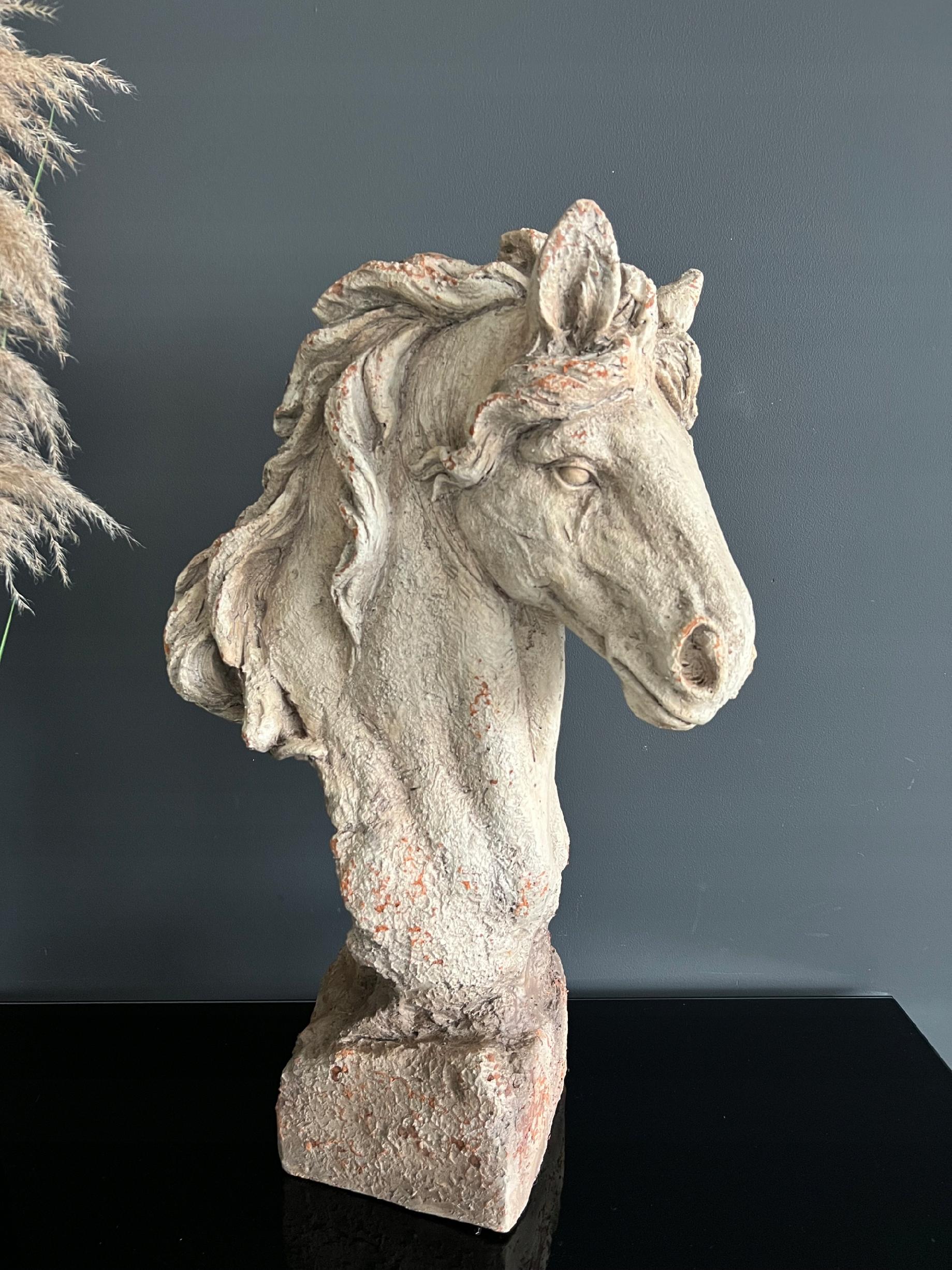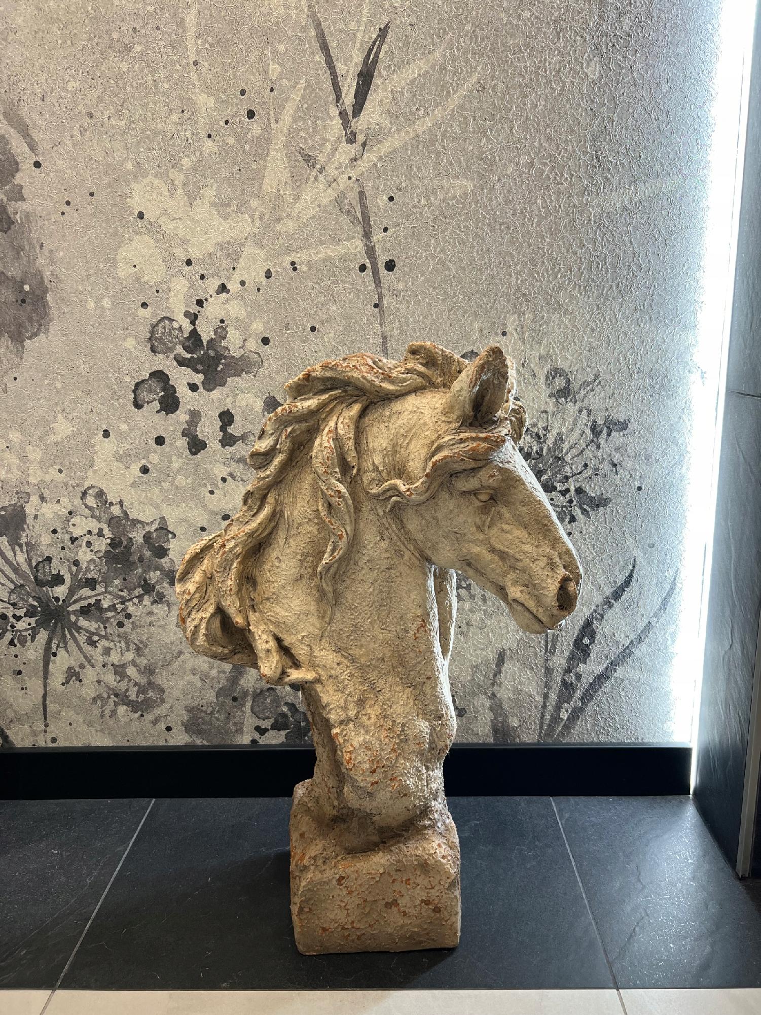 Wyjątkowa masywna głowa konia wykonana z tworzywa na podstawie.