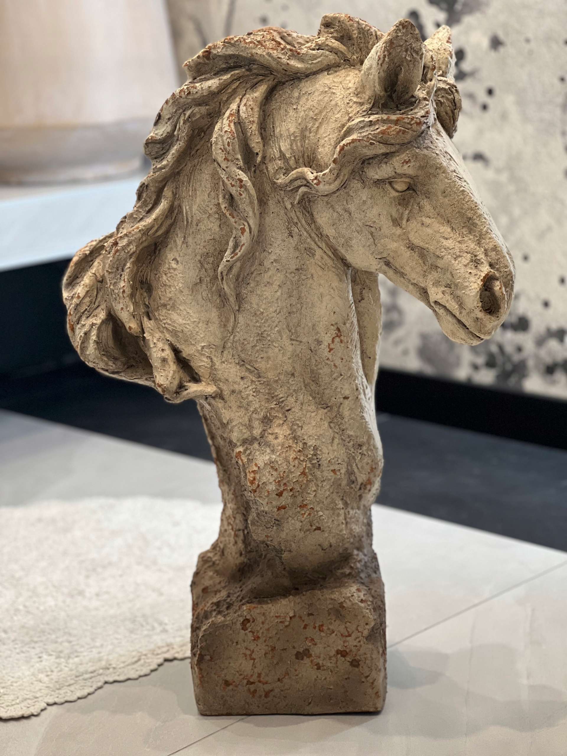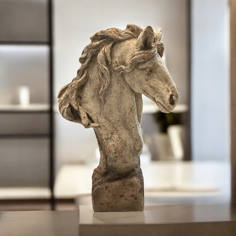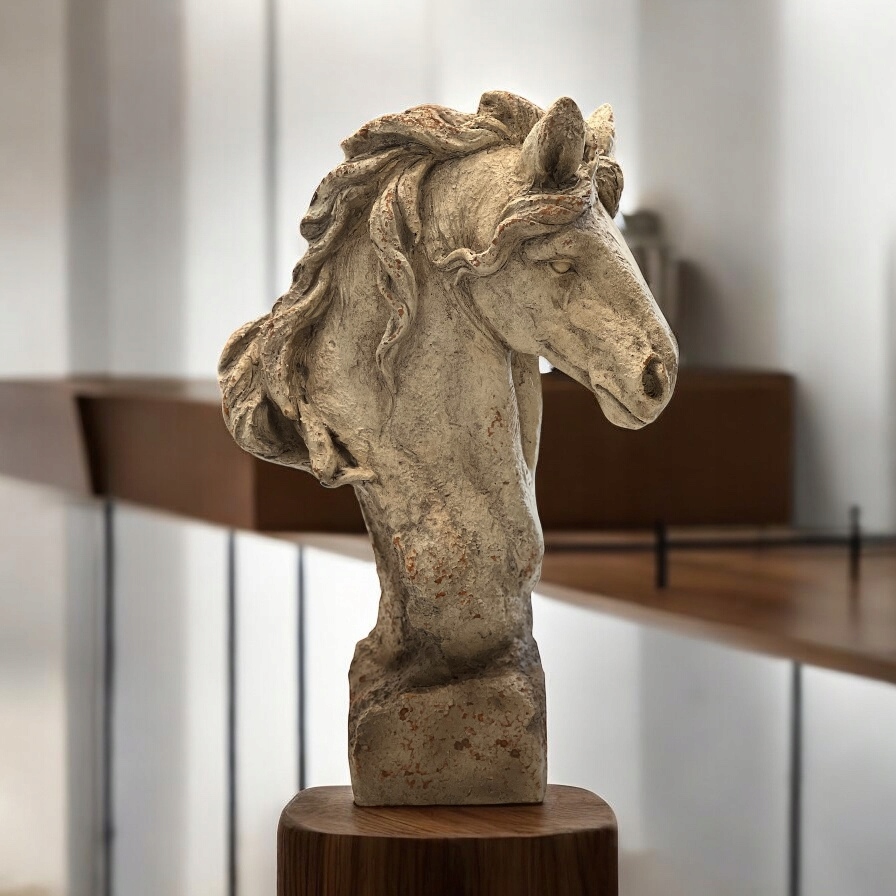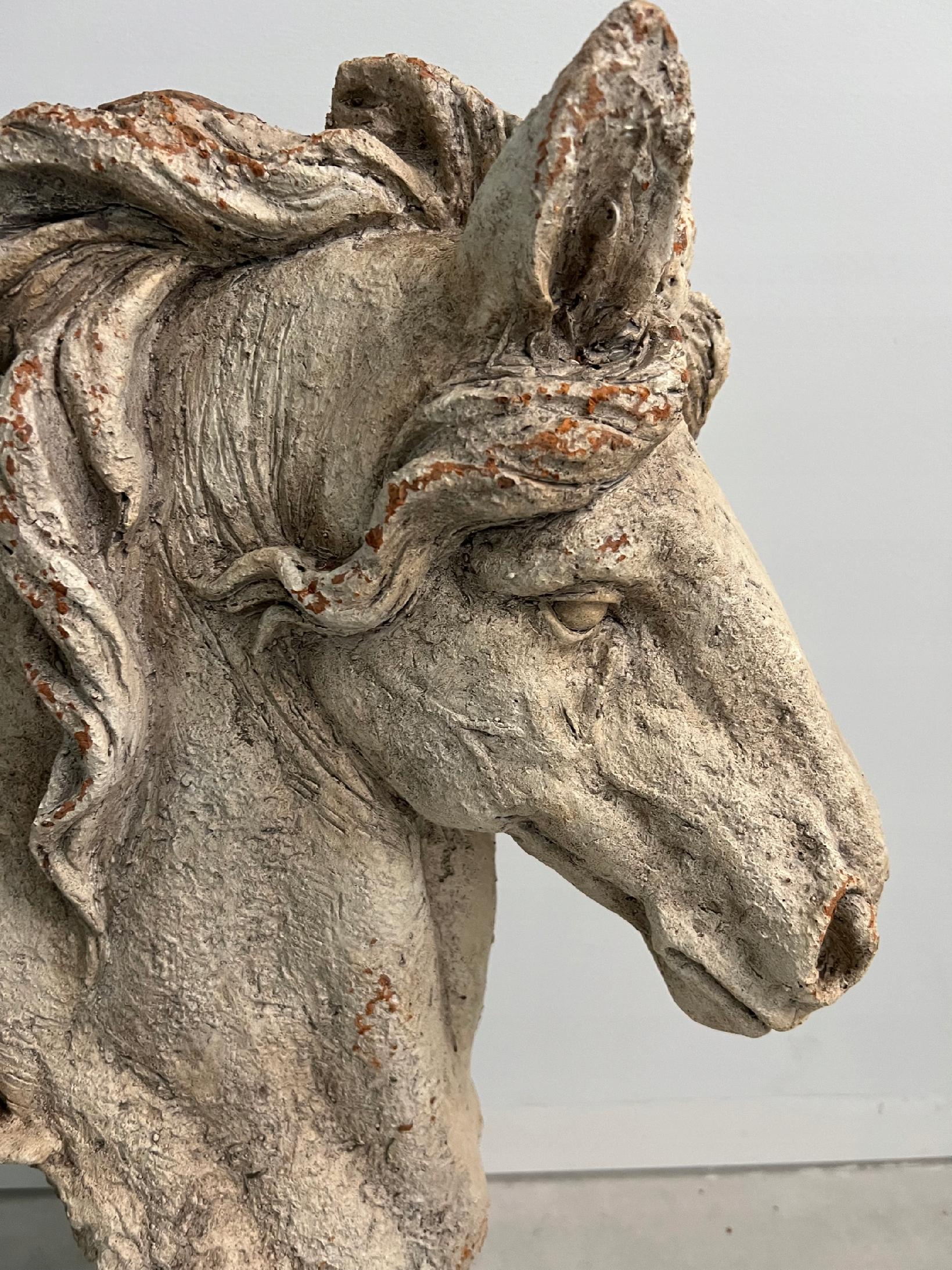 Wyjątkowa masywna głowa konia wykonana z tworzywa na podstawie.