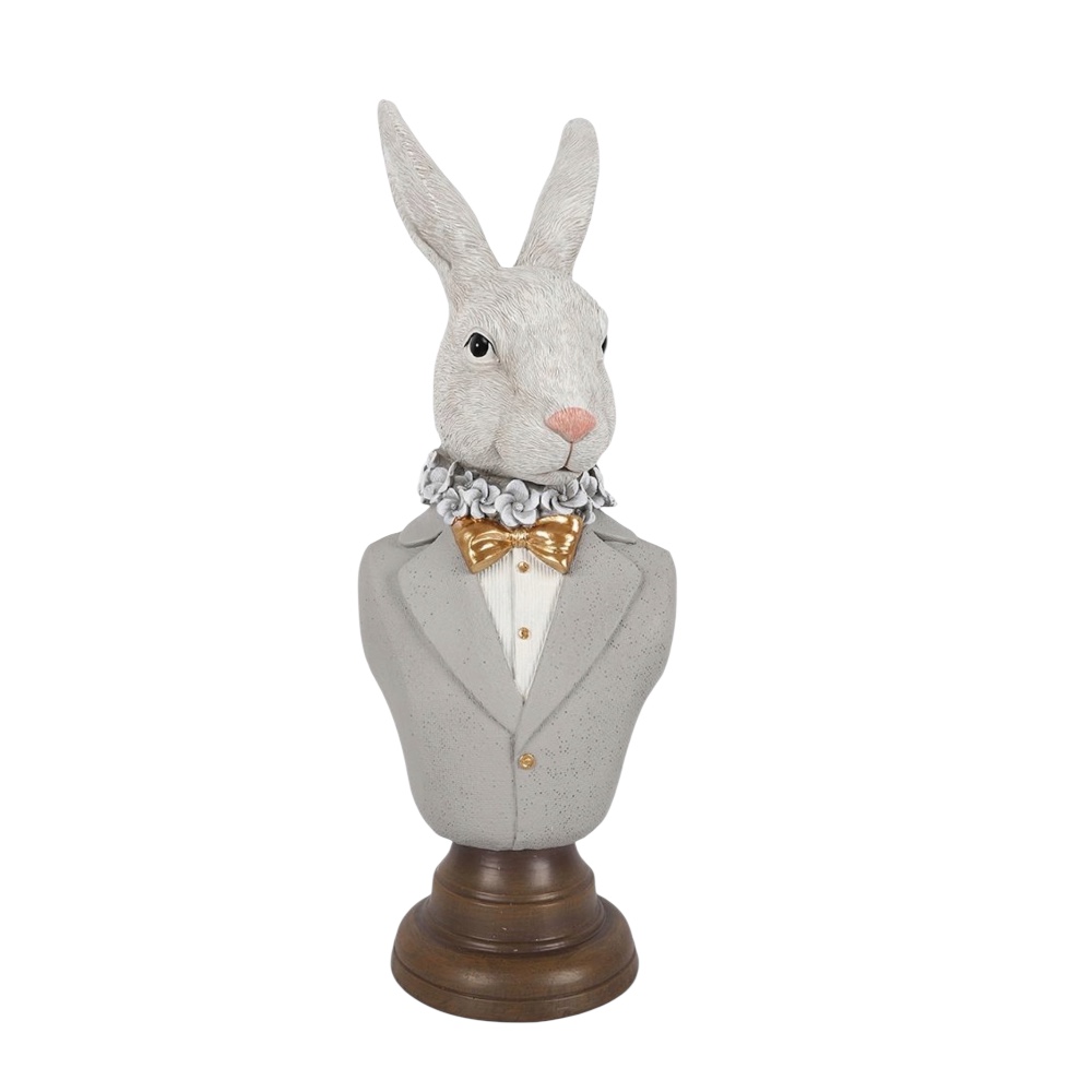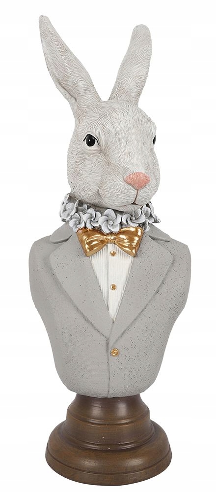 Figurka torsu królika. Elegancki Pan zając wykonany z dużą precyzją, w pomarańczowo brązowej kolorystyce