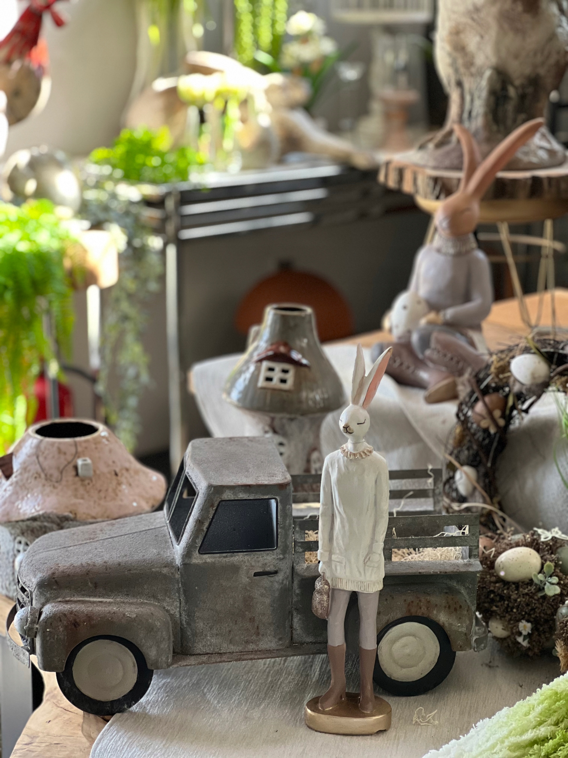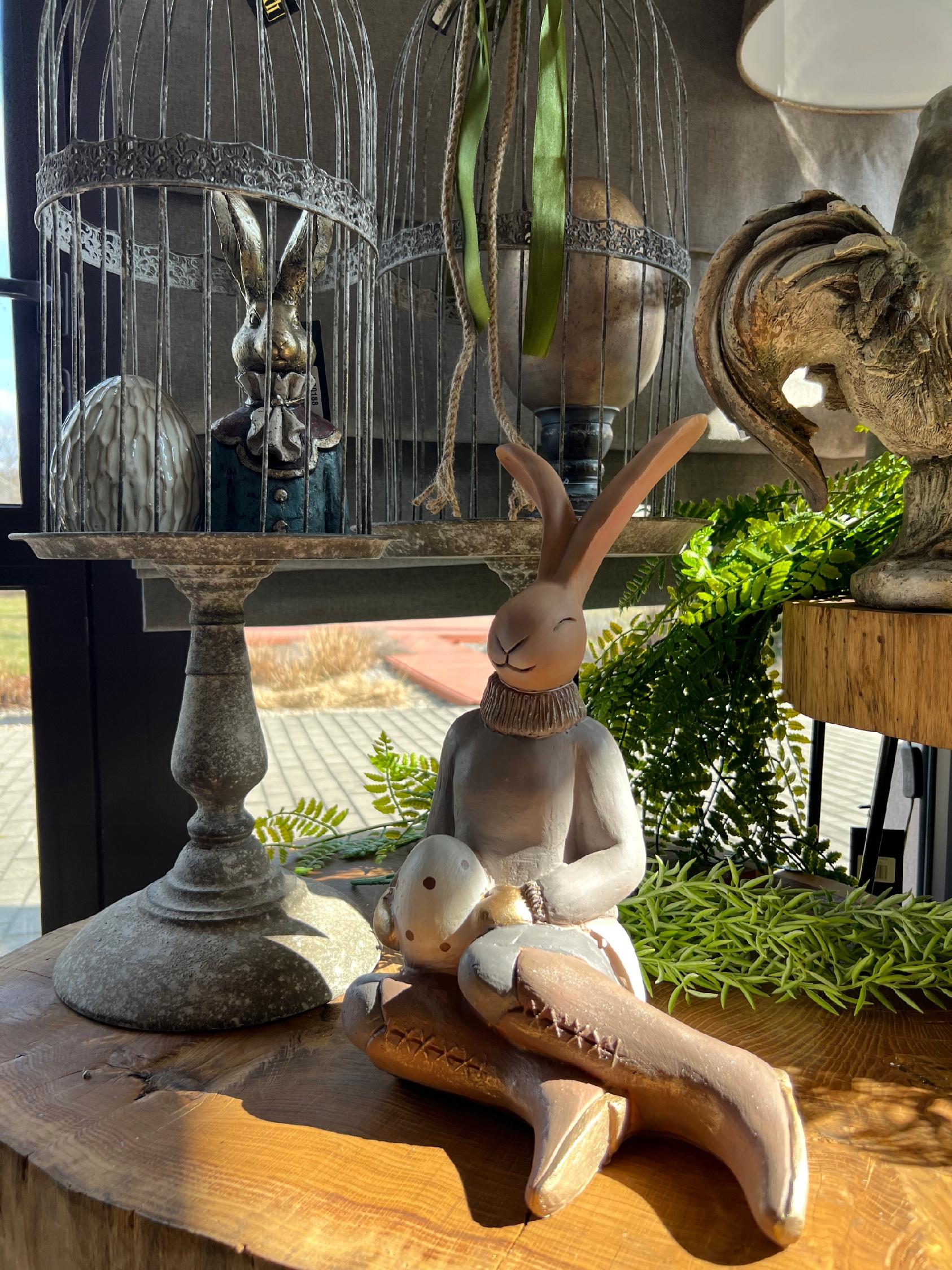 Idealna figurka wielkanocna na stolik, komodę, kominek, parapet, ale również śliczna dekoracja lady, recepcji czy witryny sklepowej