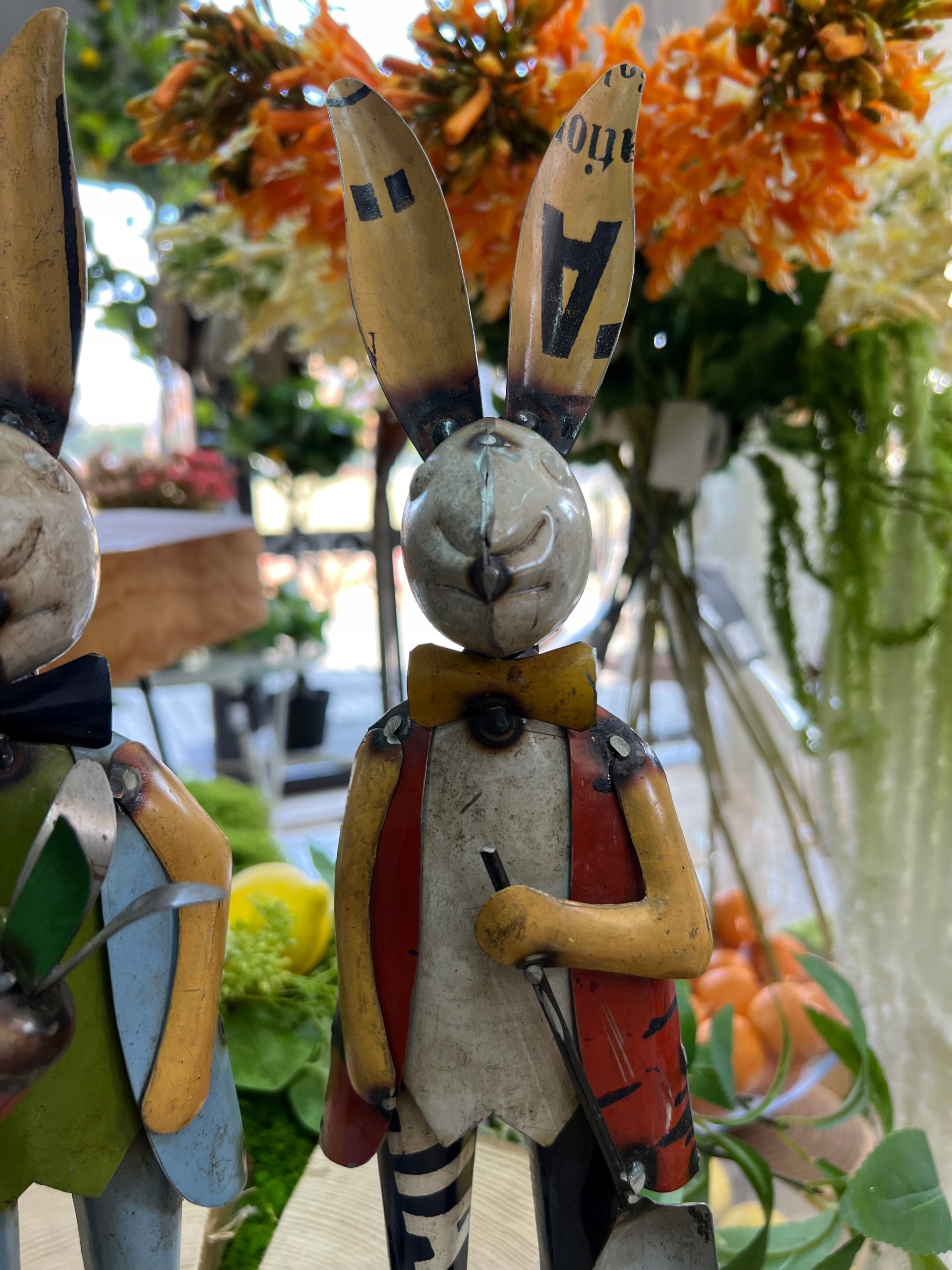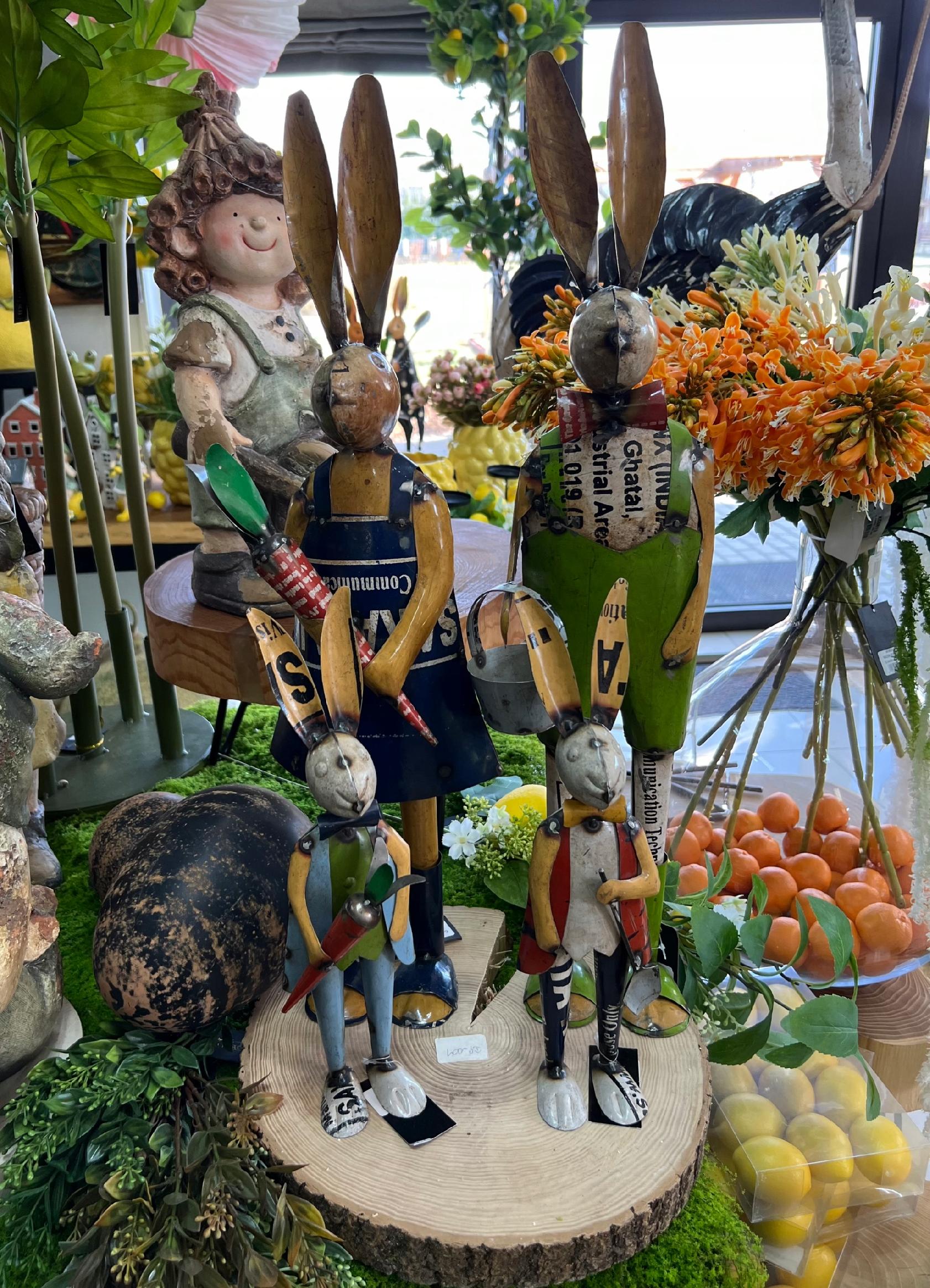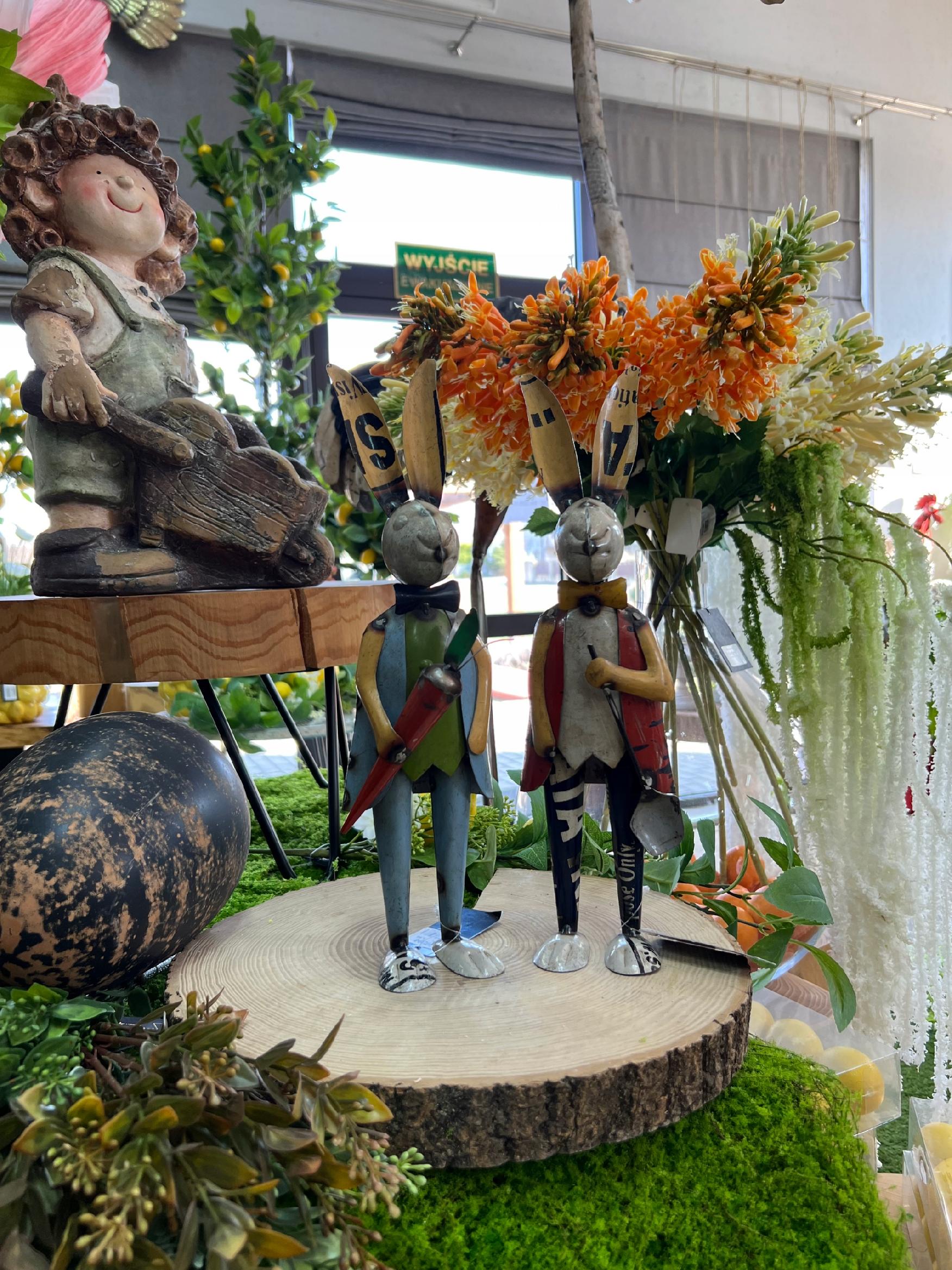 FIGURKA ZAJĄCA OZDOBA NA WIELKANOC KOLOROWA DEKORACJA Z METALU