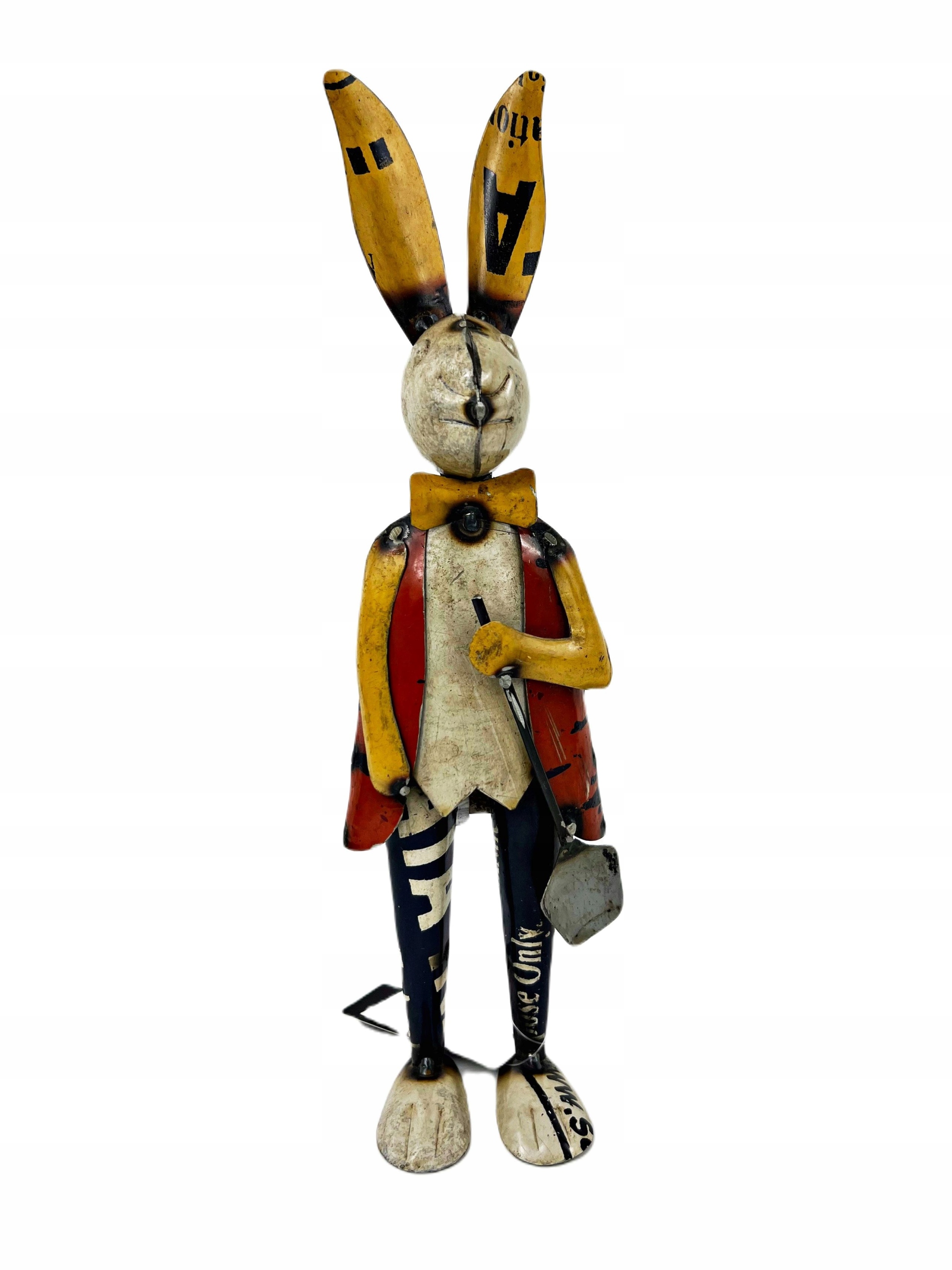 Zając, królik wykonany z metalu w ciekawej kolorystyce
