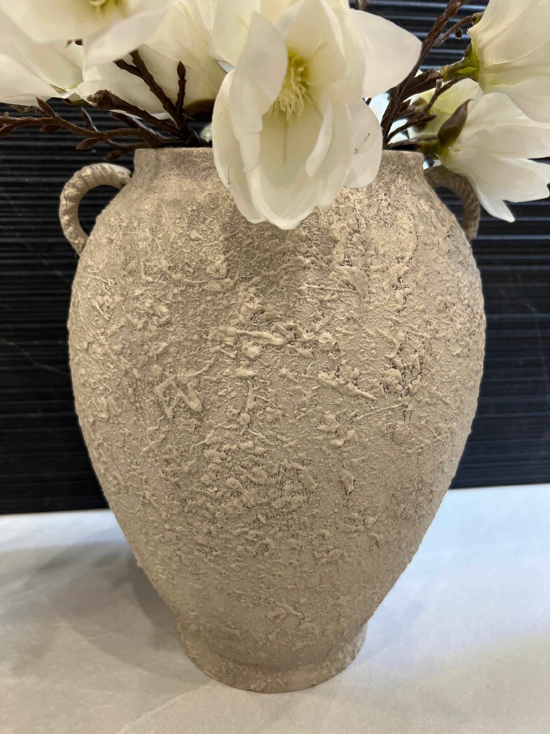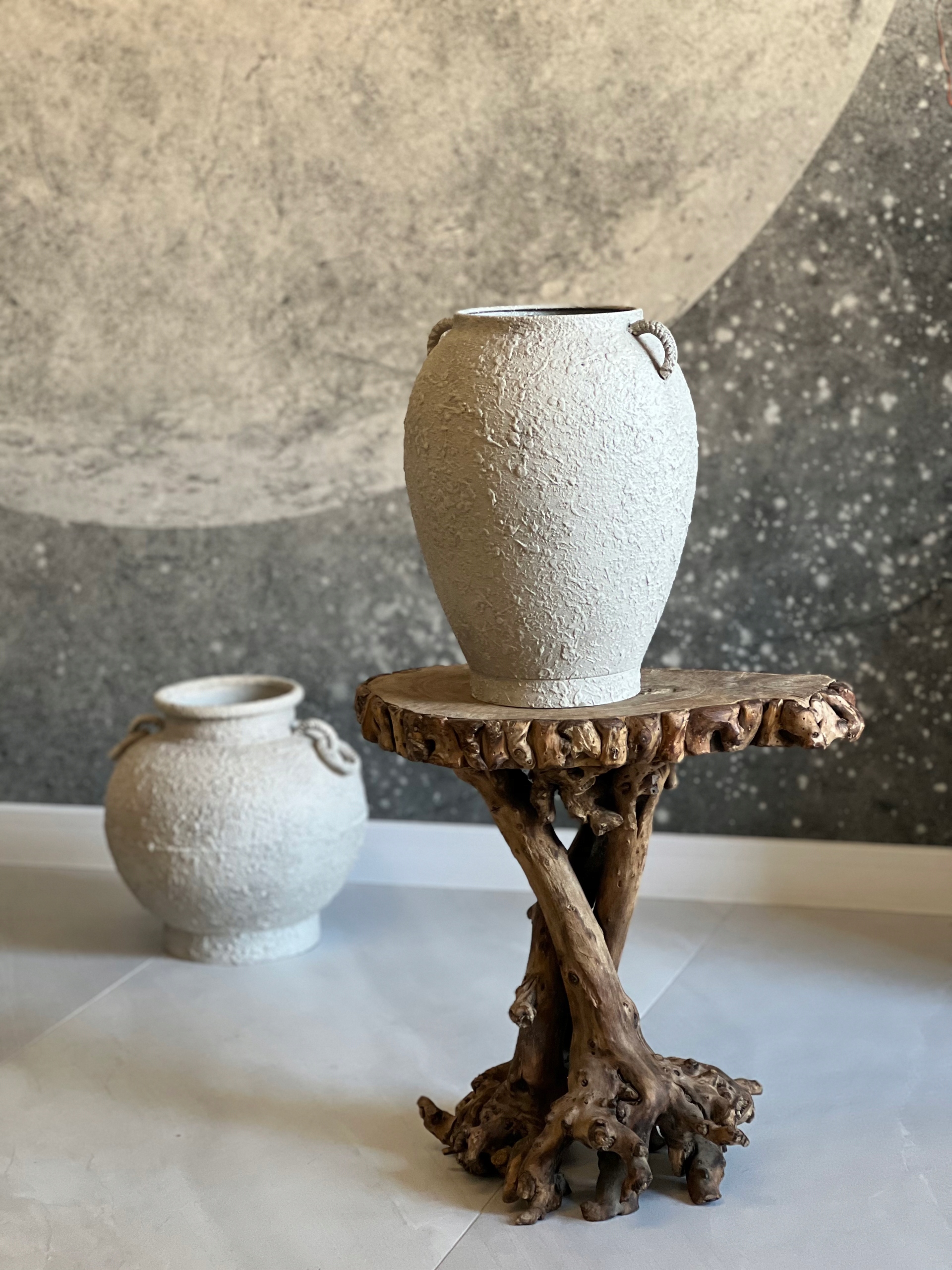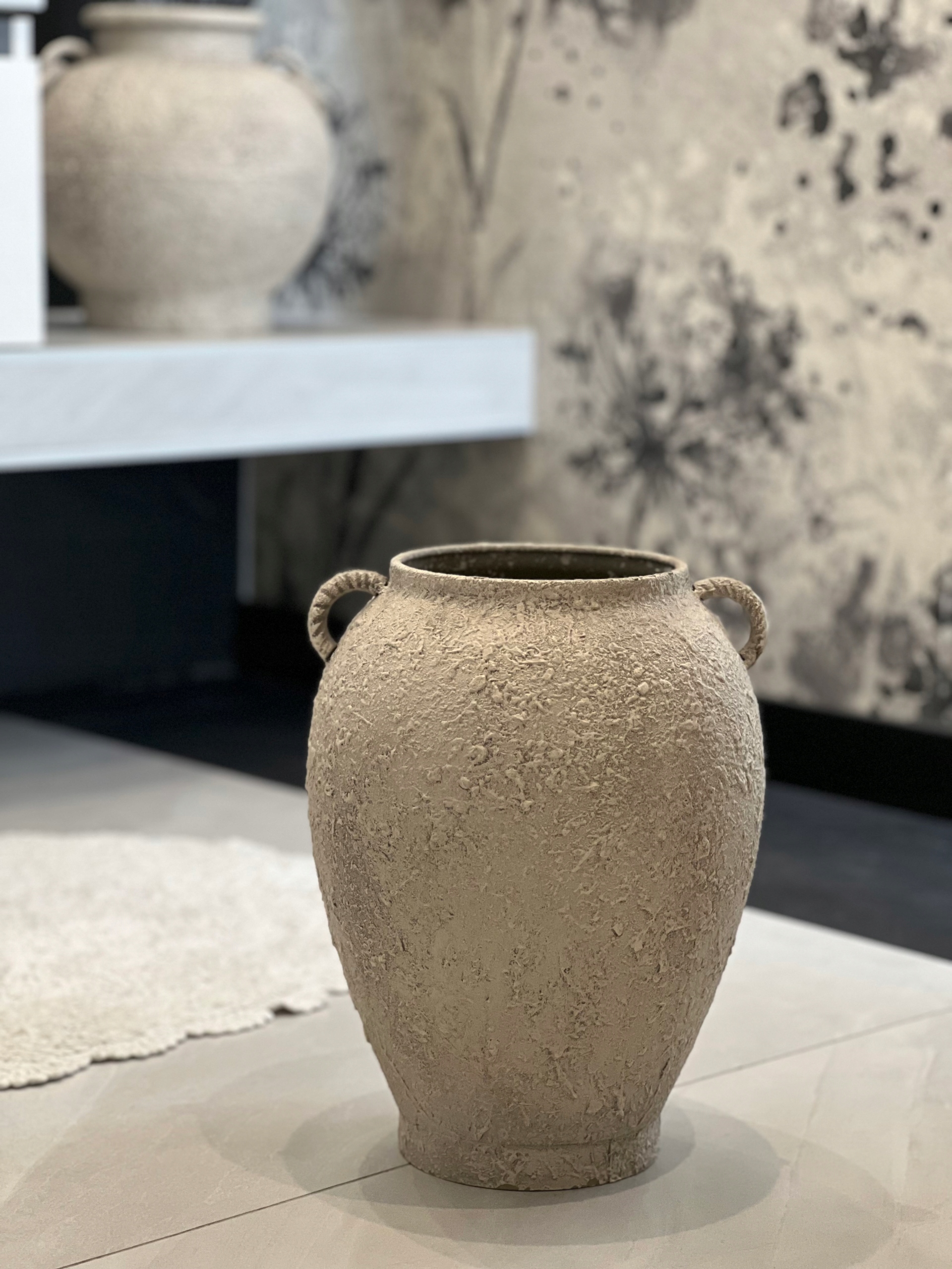 Ciekawy wazon w beżowym kolorze w stylu vintage