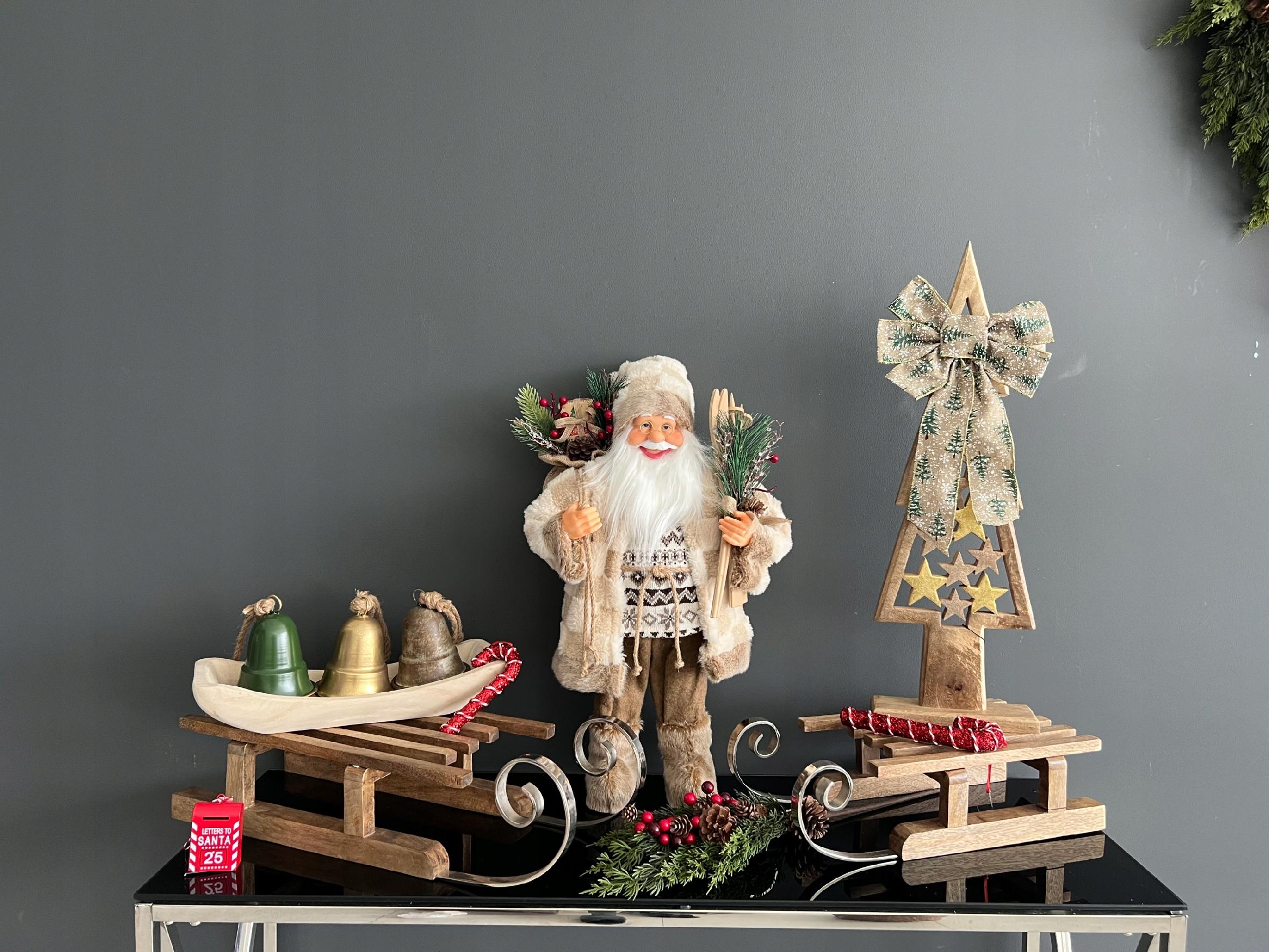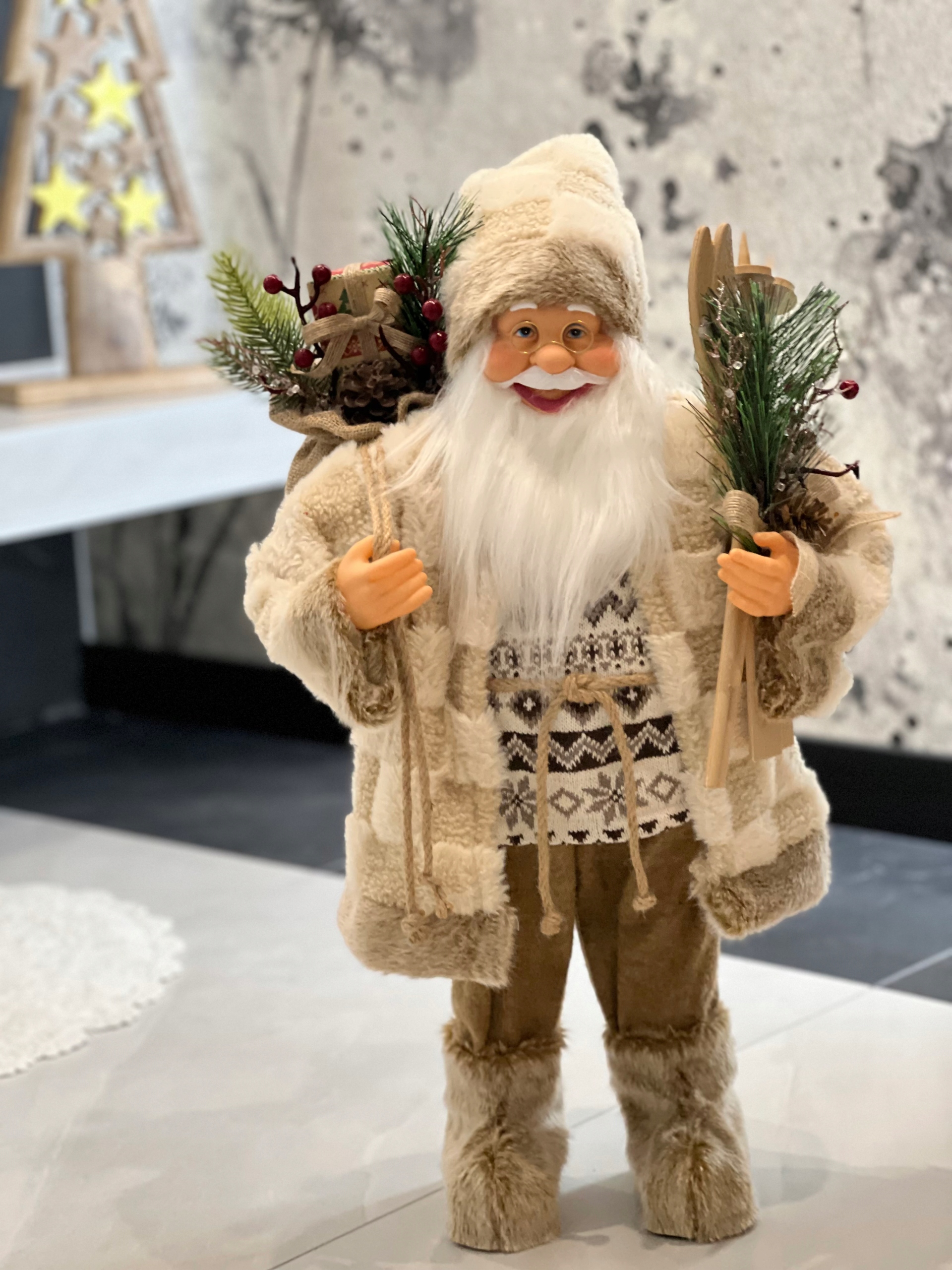 Figurka Mikołaja w beżowej kolorystyce