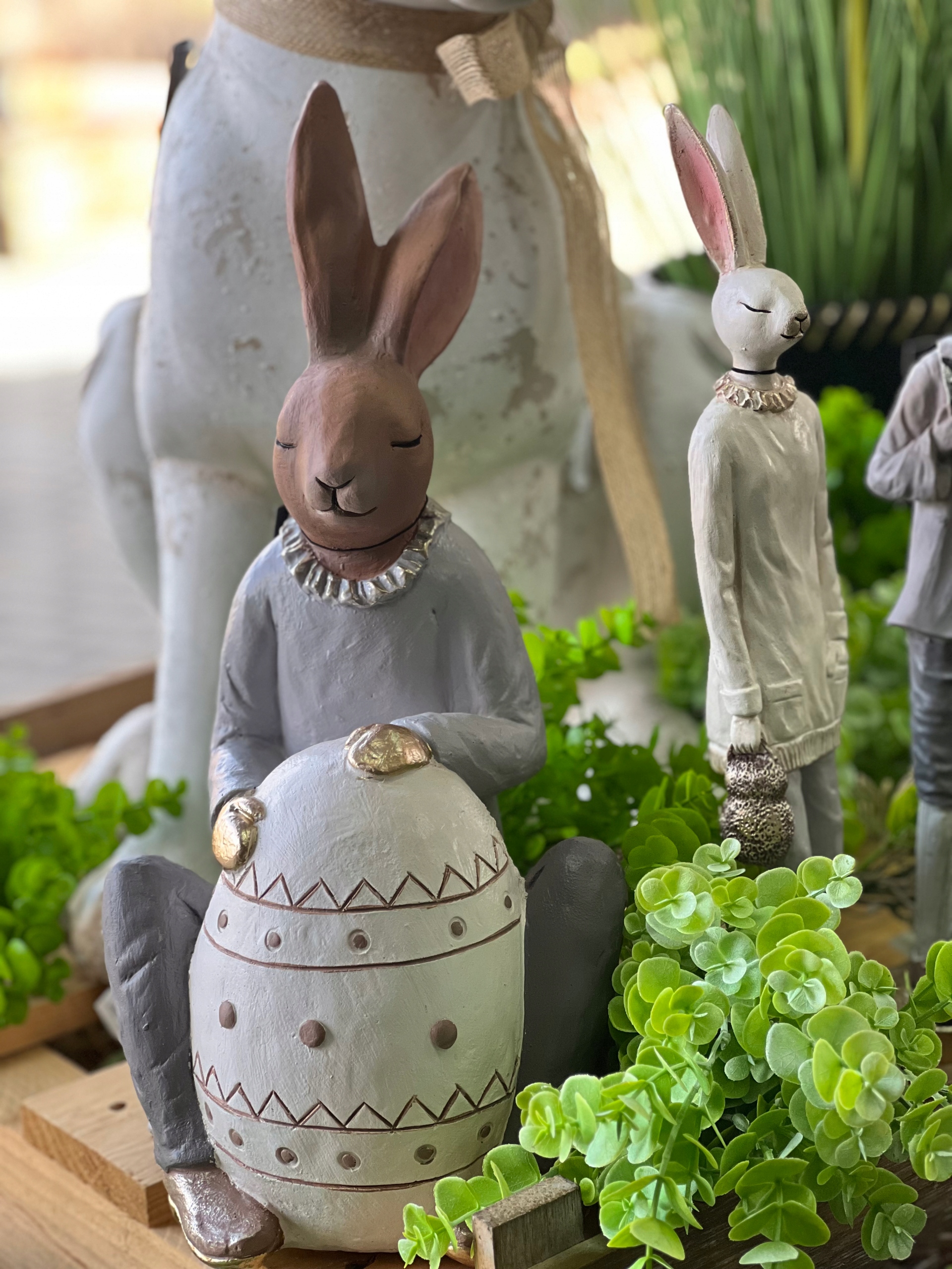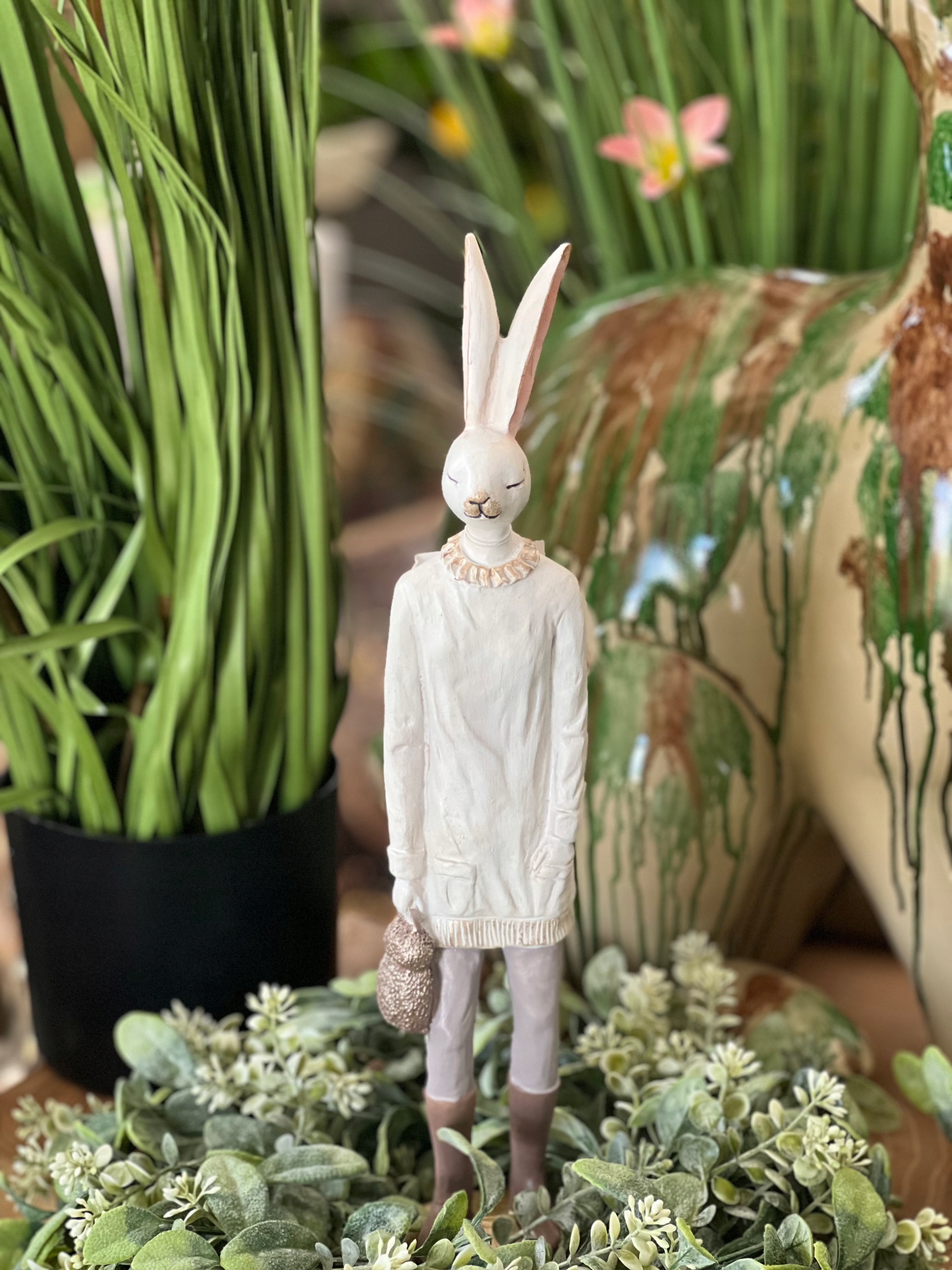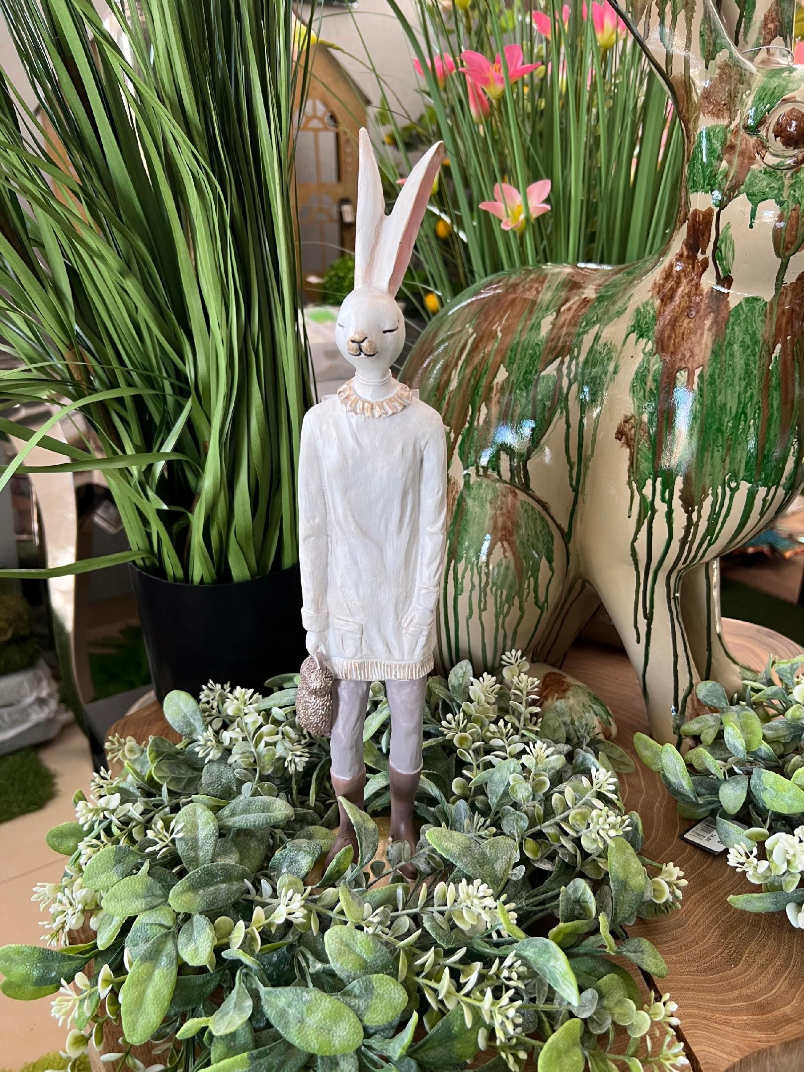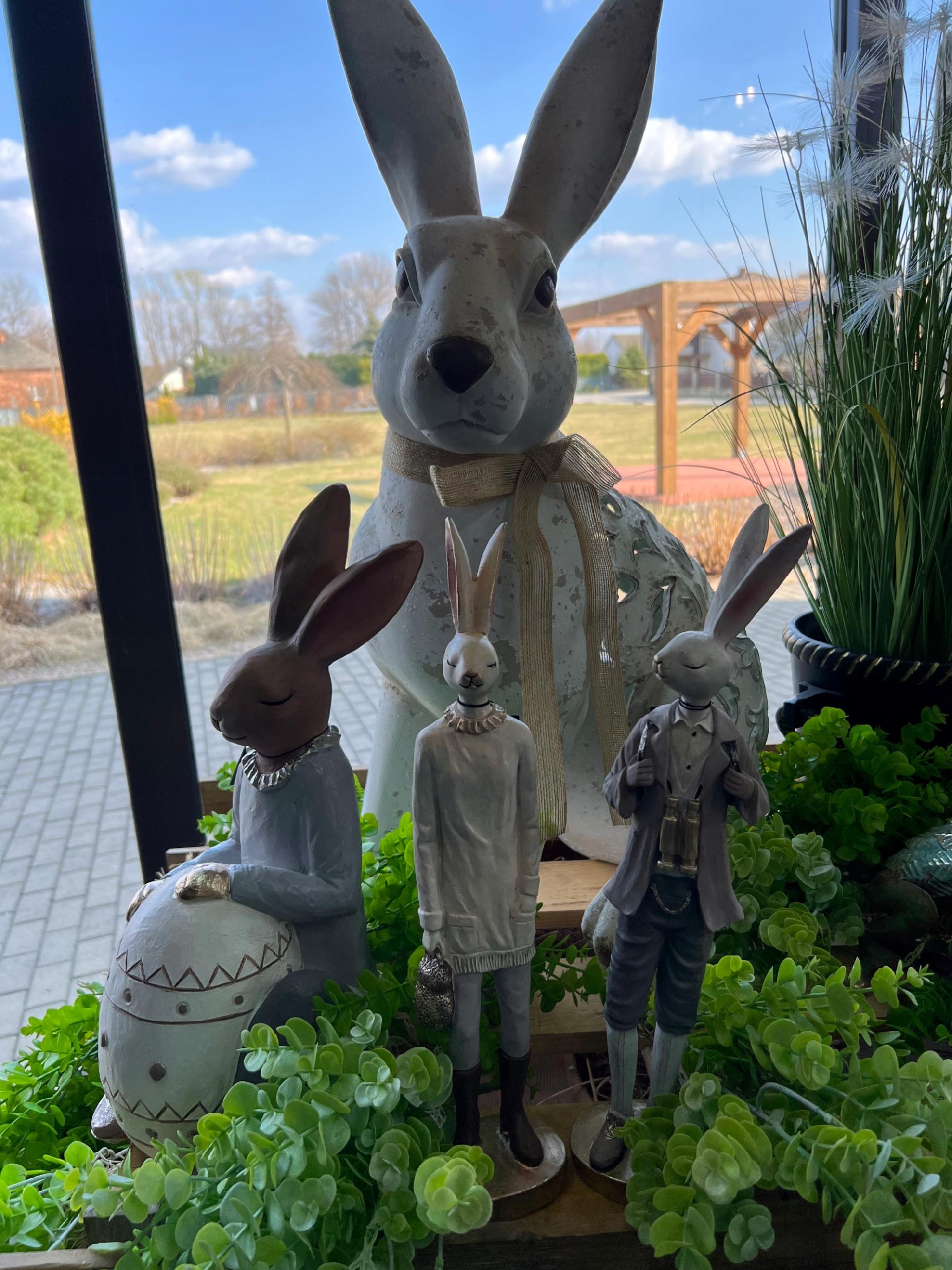 Idealna figurka wielkanocna na stolik, komodę, kominek, parapet, ale również śliczna dekoracja lady, recepcji czy witryny sklepowej