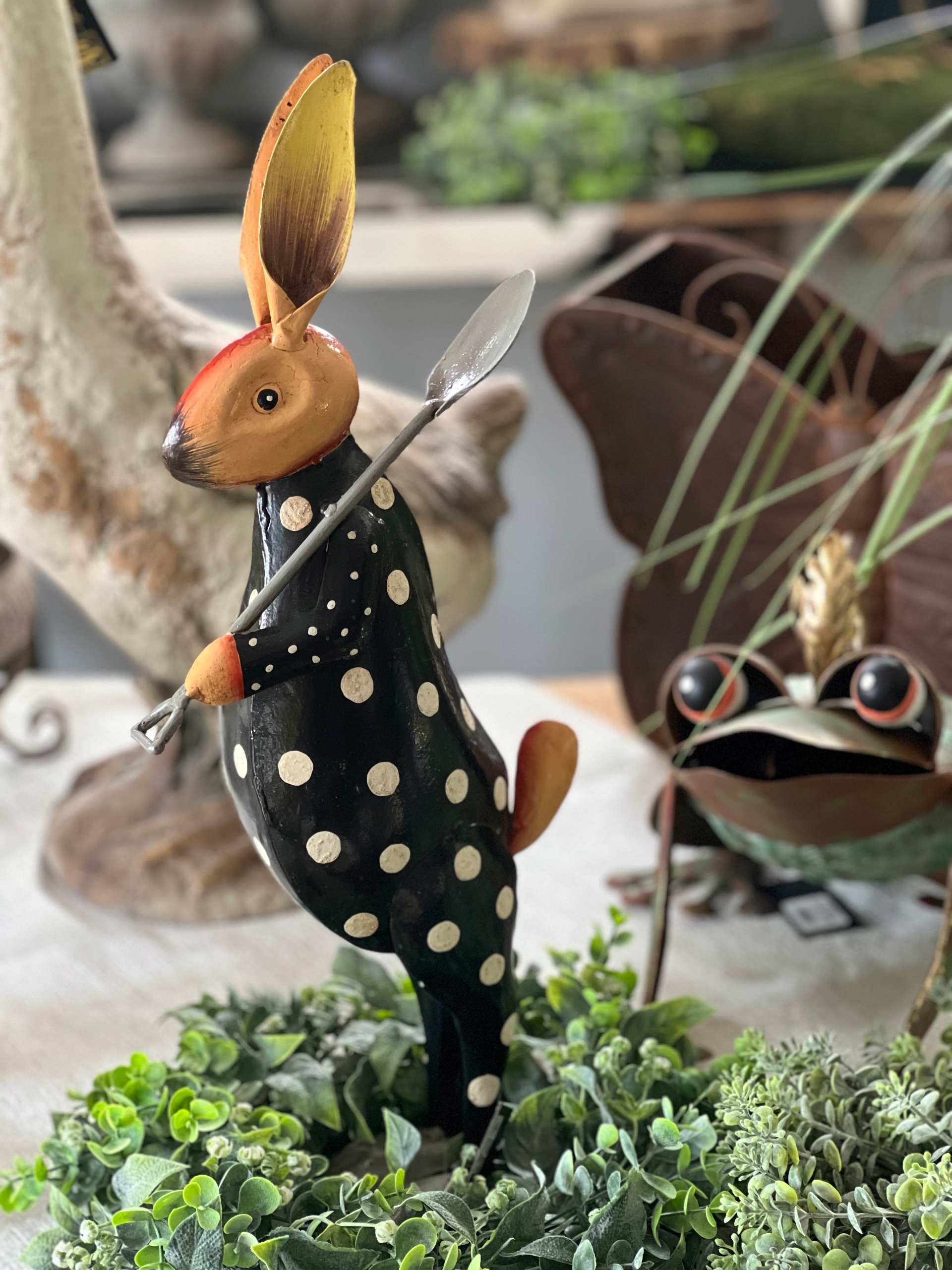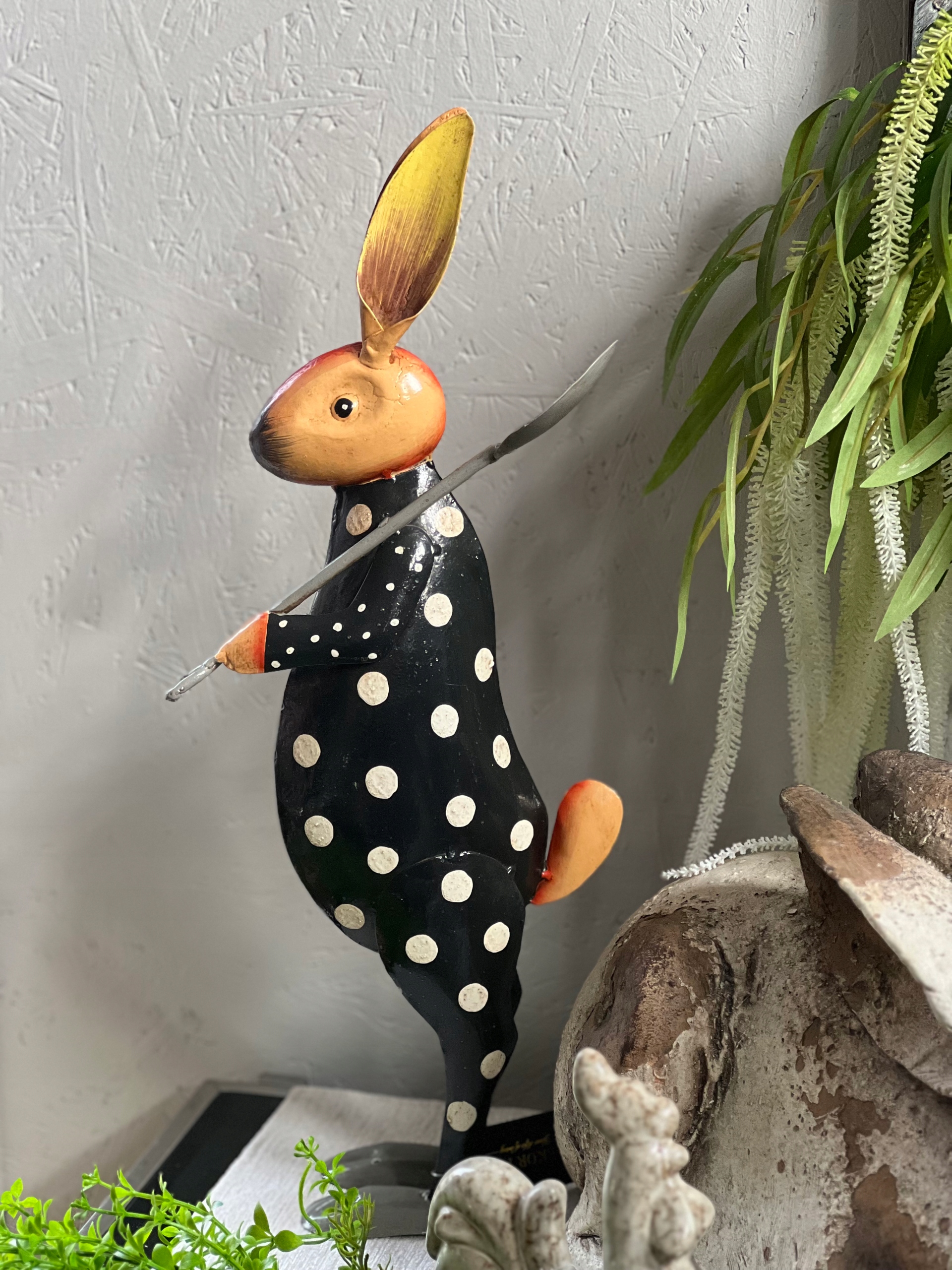 Zając, królik wykonany z metalu w ciekawej kolorystyce