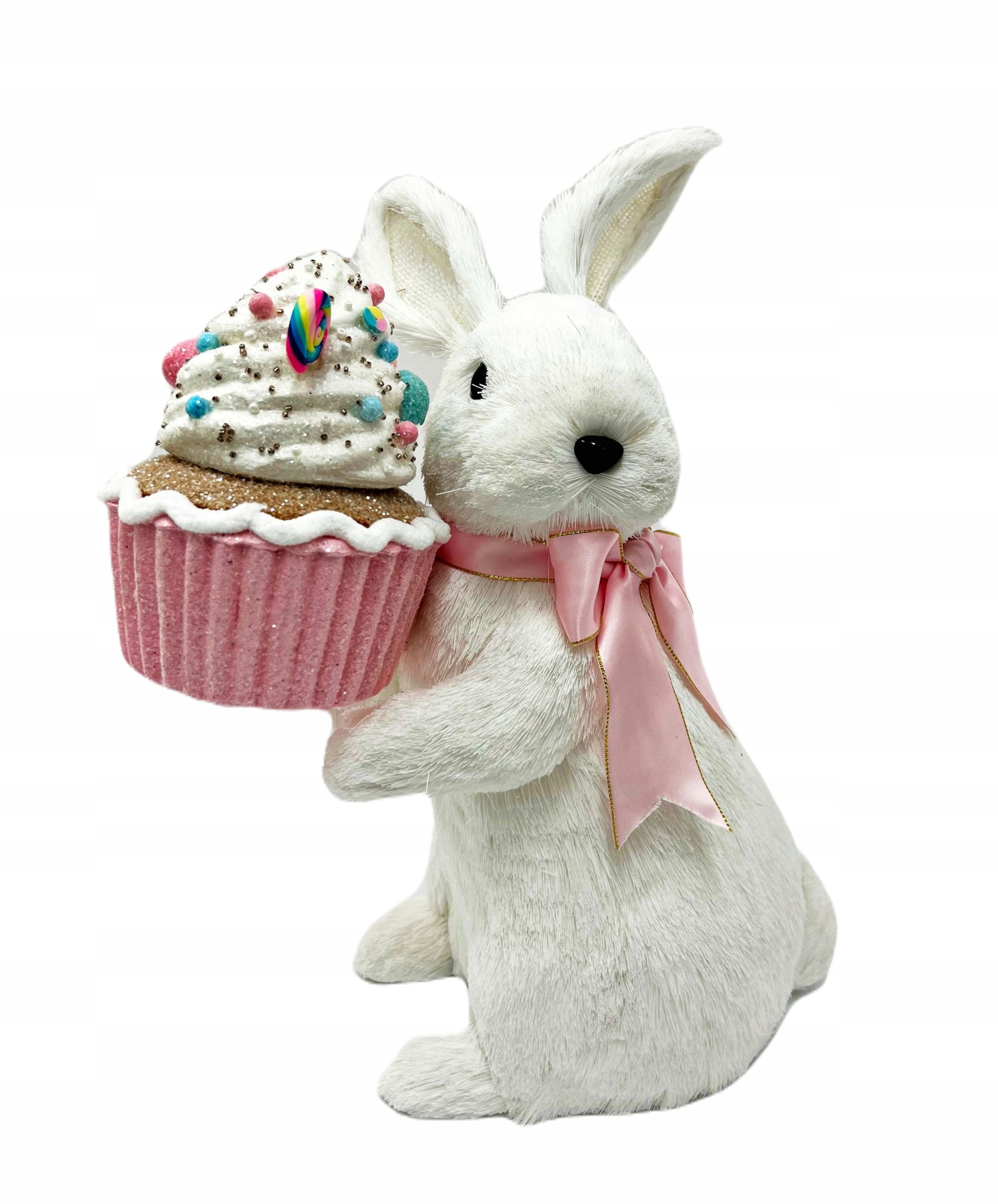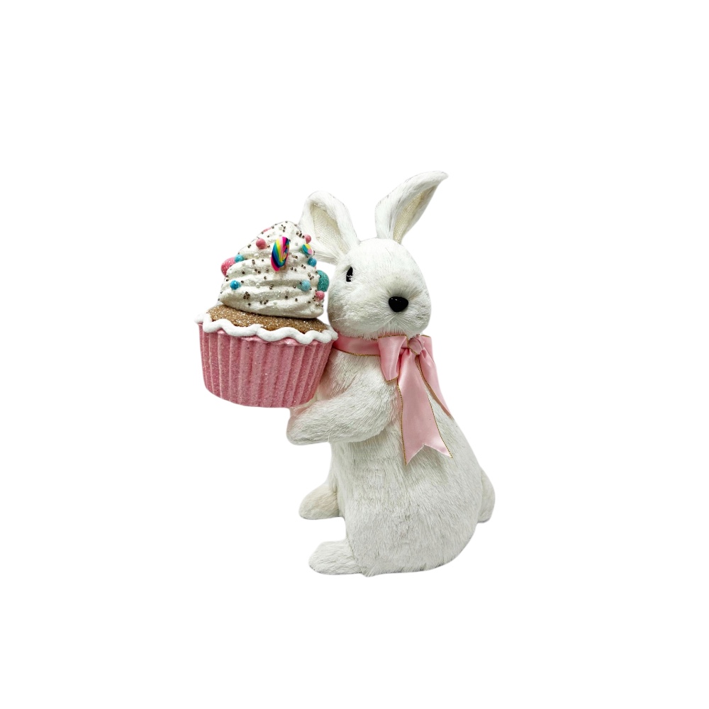 Urocza dekoracja na Wielkanoc. Śliczny biały zajączek z kolorową maffinką.