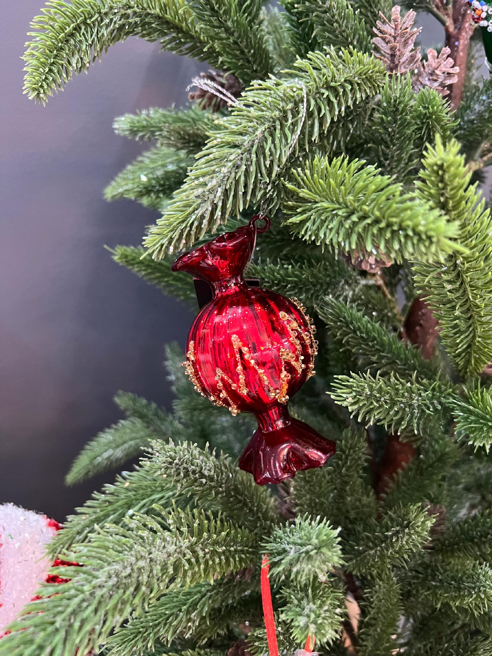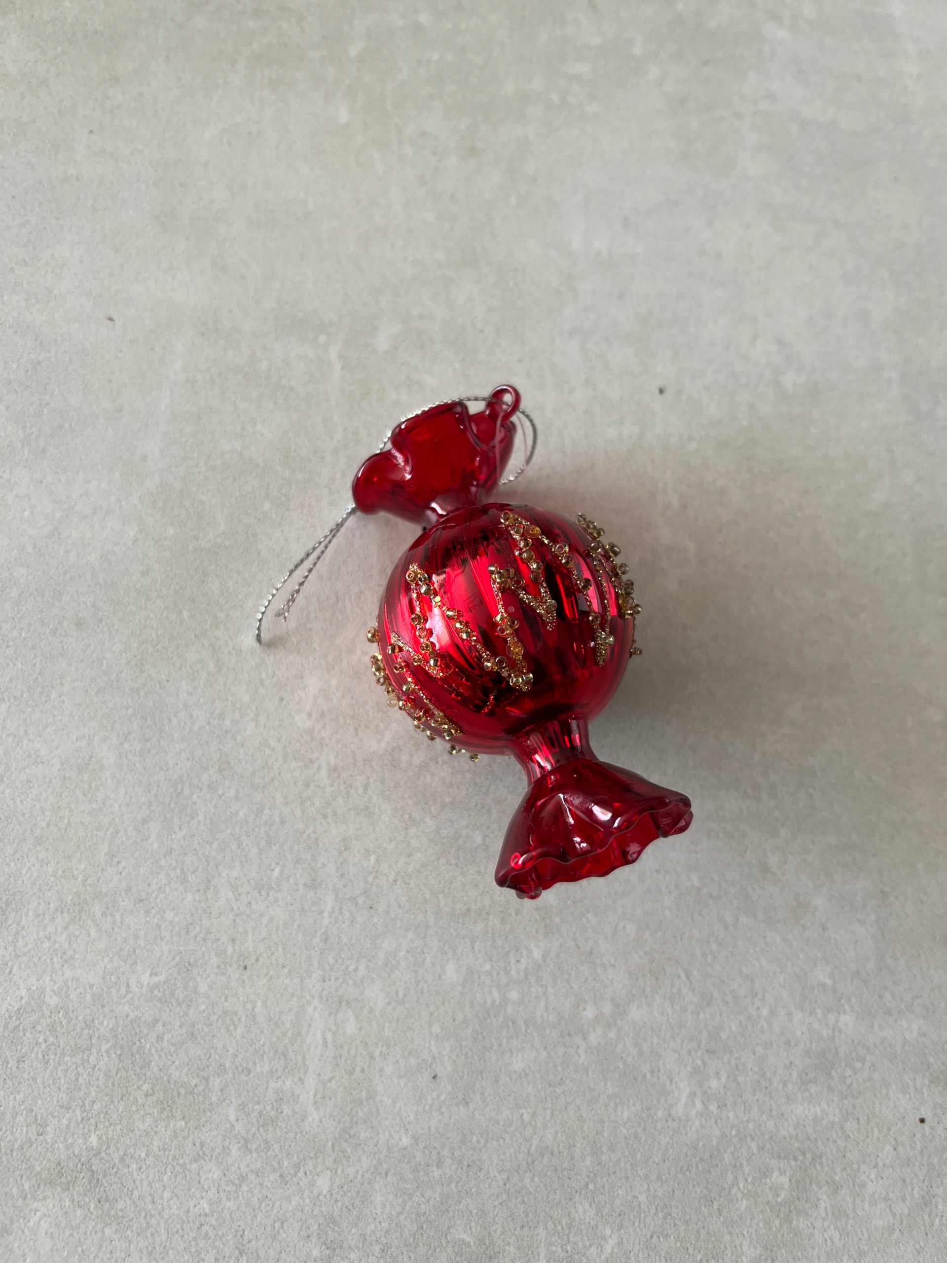 ZAWIESZKA ŚWIĄTECZNA SZKLANA DEKORACJA CHOINKOWA CZERWONY CUKIEREK