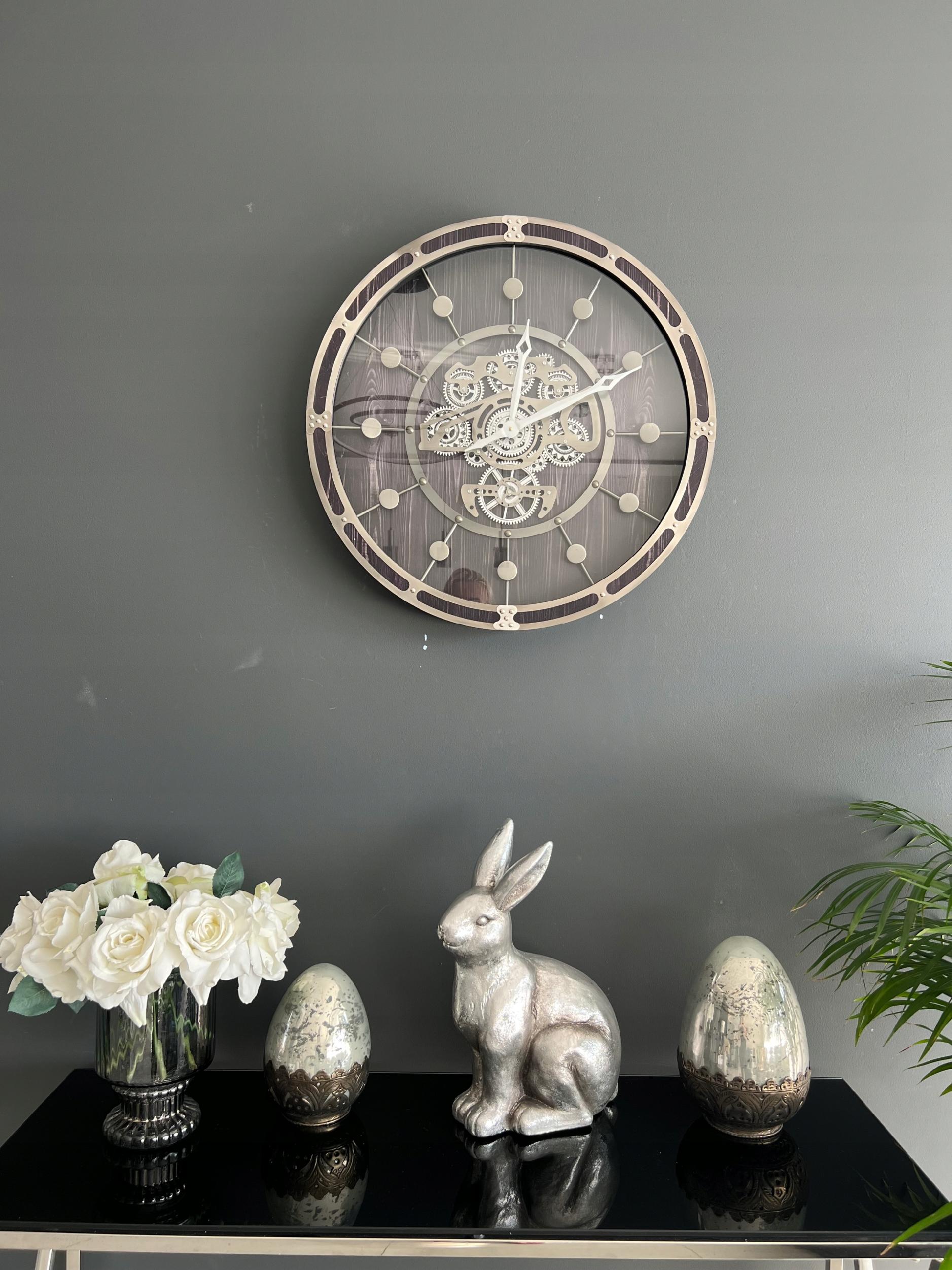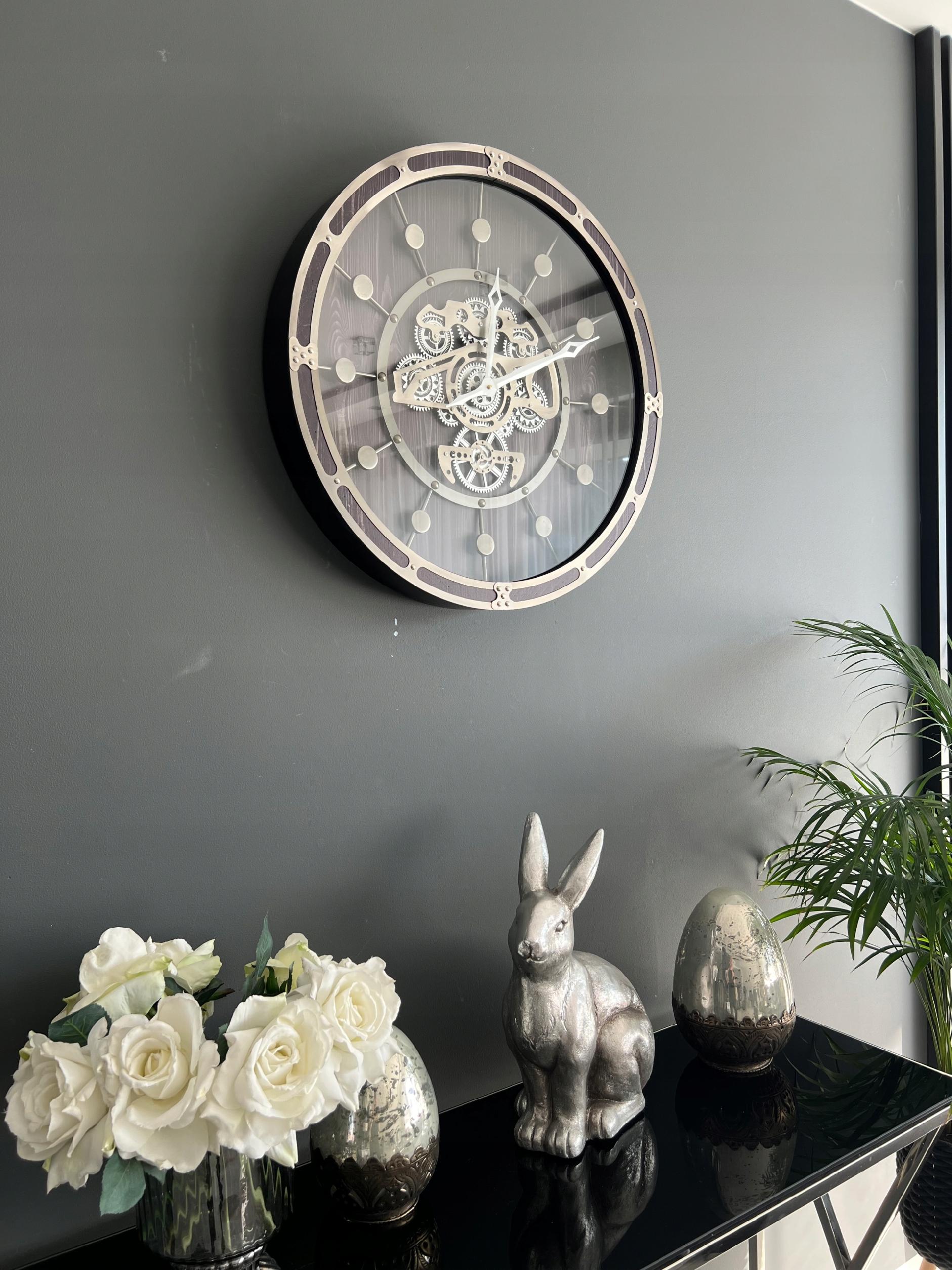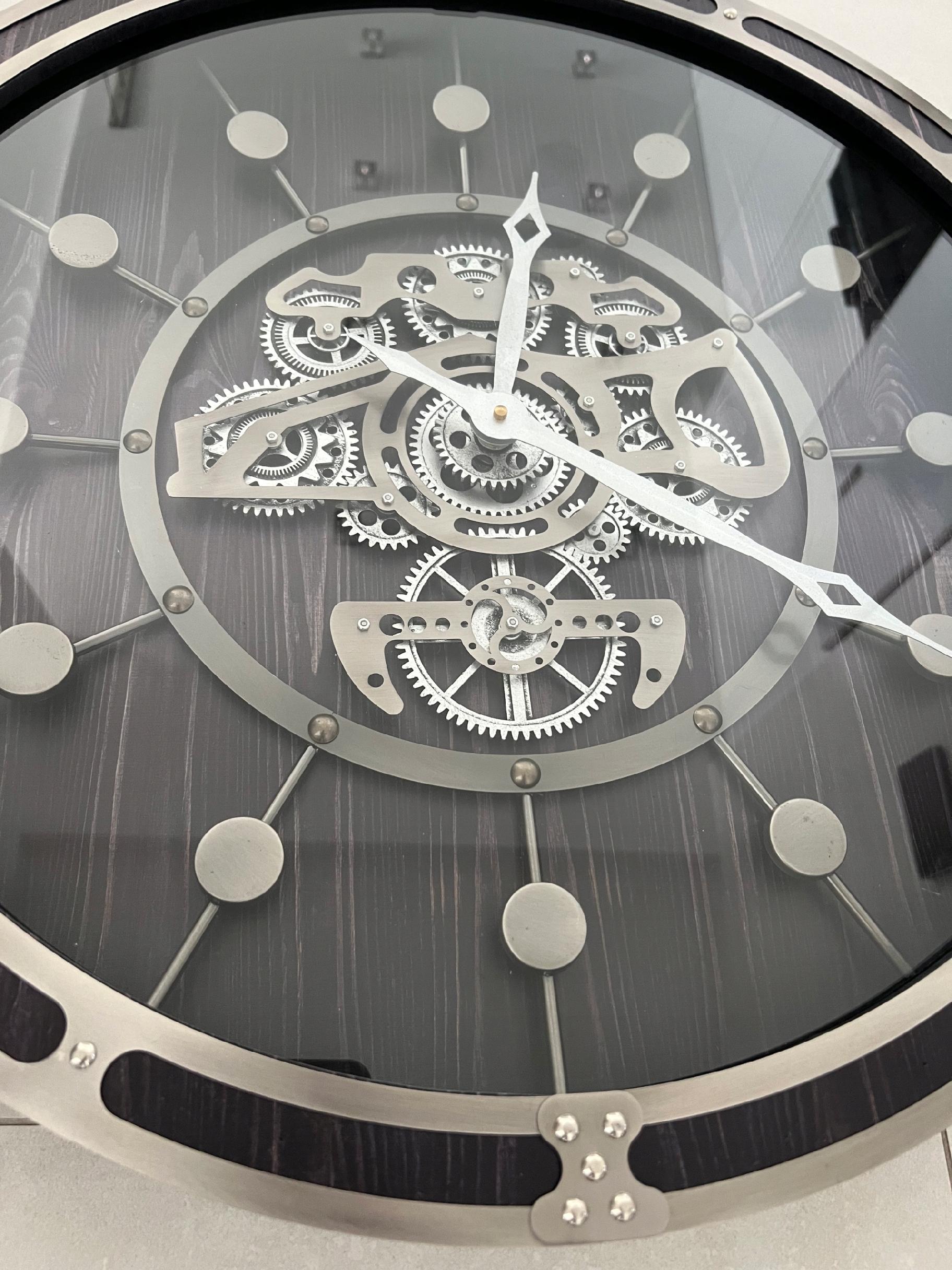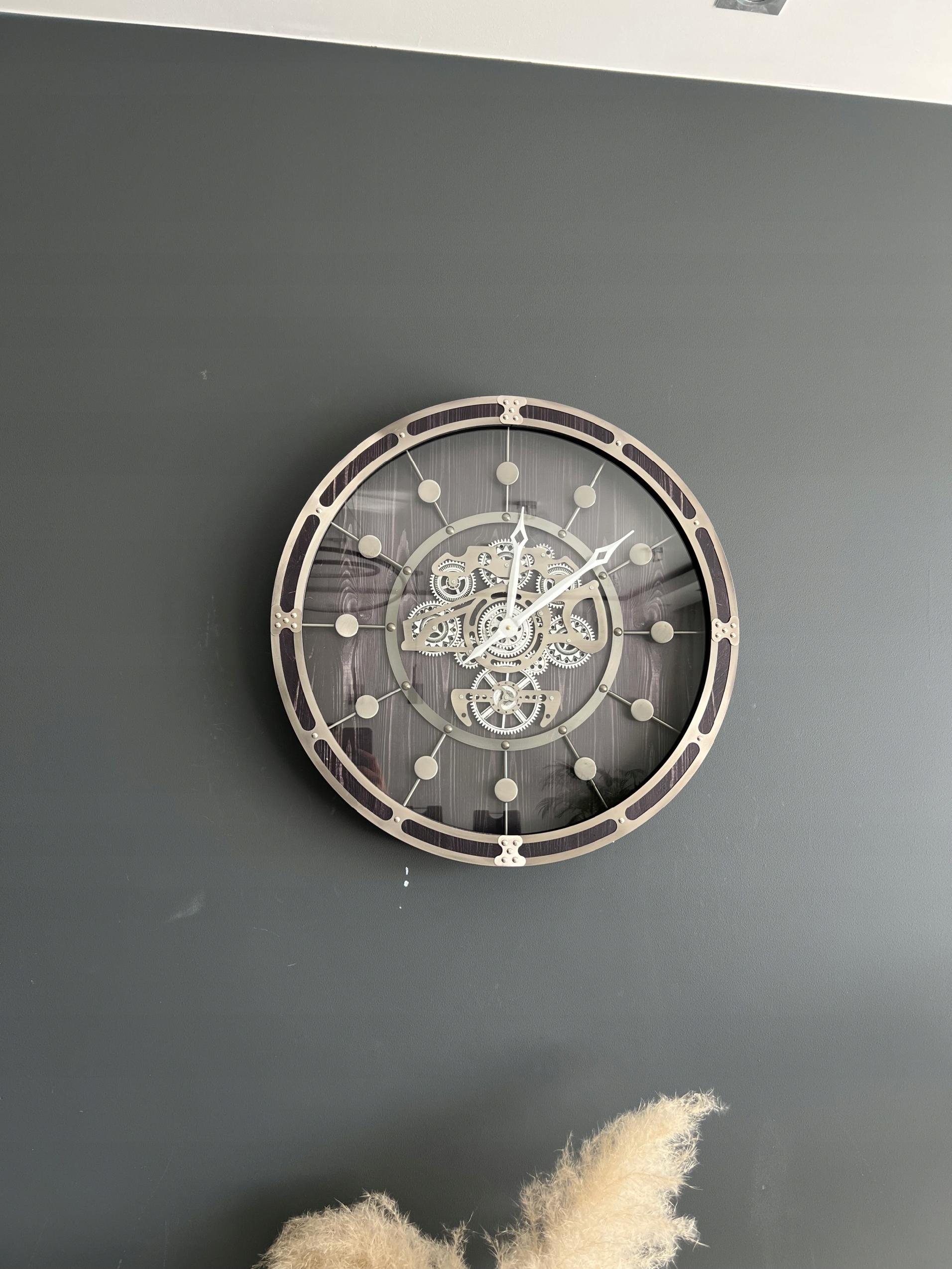 Ruchome zębatki dodają mu unikalności i interesującego wyglądu, co sprawia, że jest to wyjątkowy zegar dla osób poszukujących czegoś