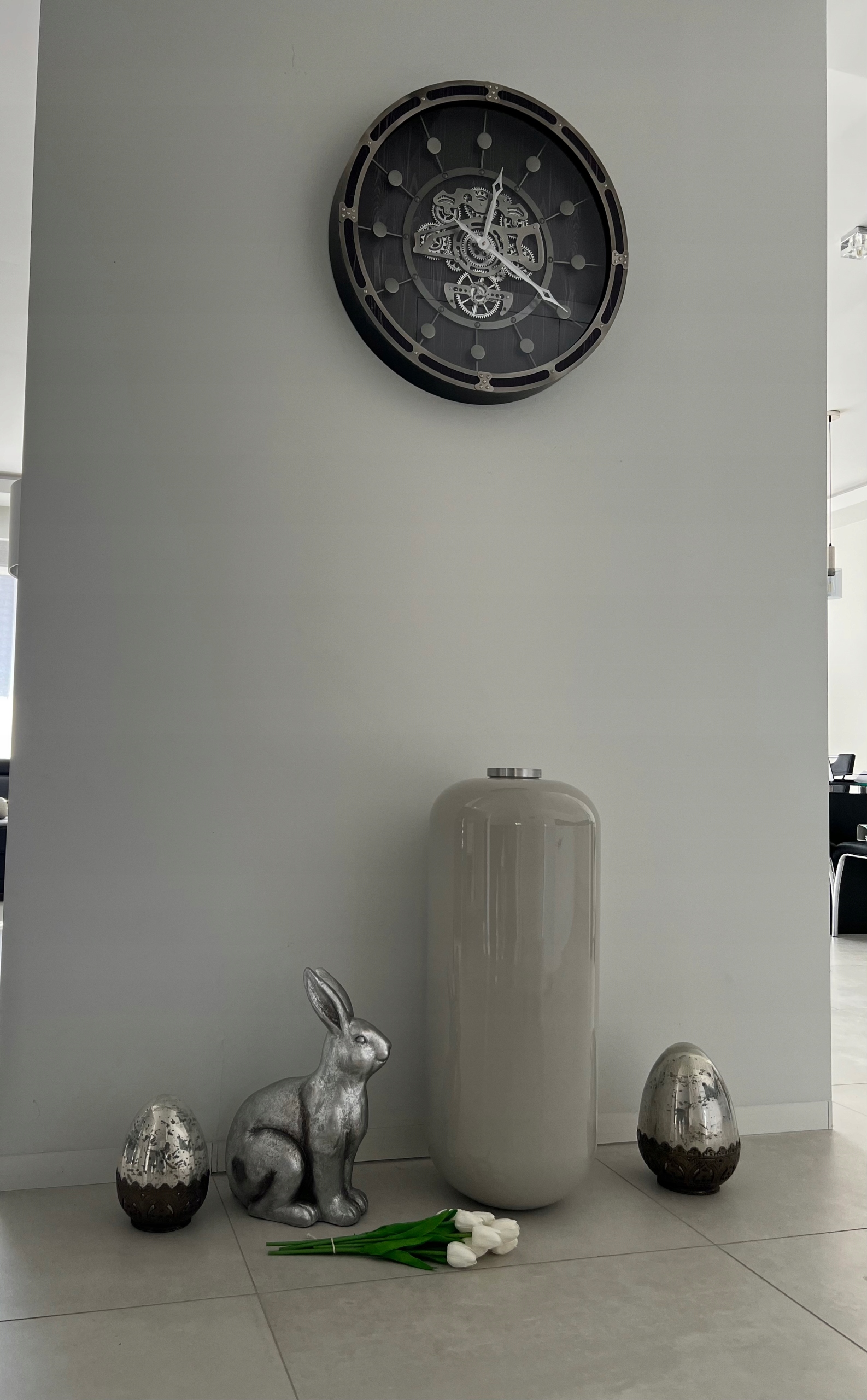 ZEGAR ŚCIENNY DUŻY CZARNY SREBRNY METALOWY SZARY 62 CM